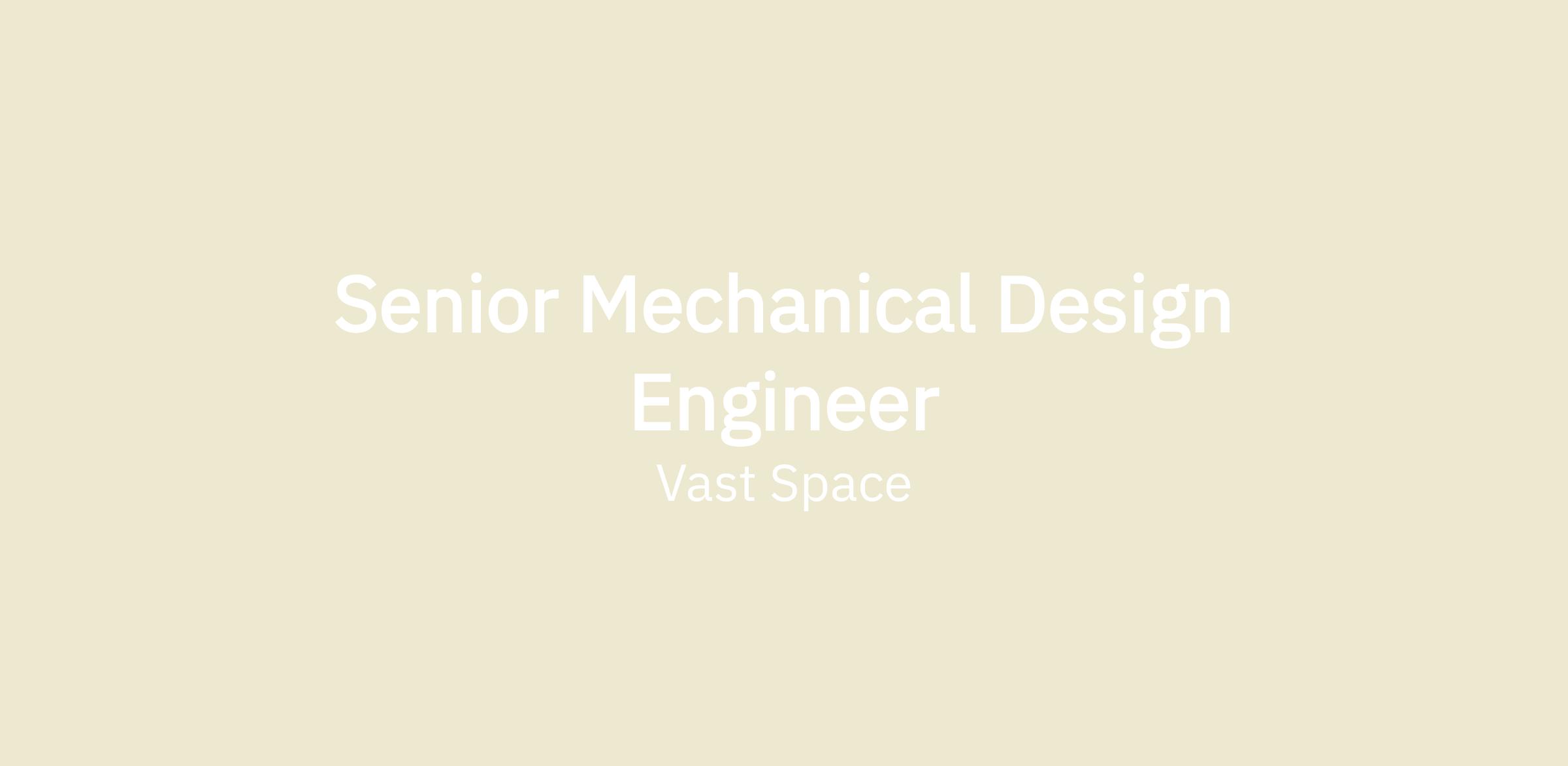 Vast is looking for a Senior Mechanical Design Engineer, reporting to the Senior Manager of Structures Design, to support the development of the systems that will be required for the design and build of artificial-gravity human-rated space stations.