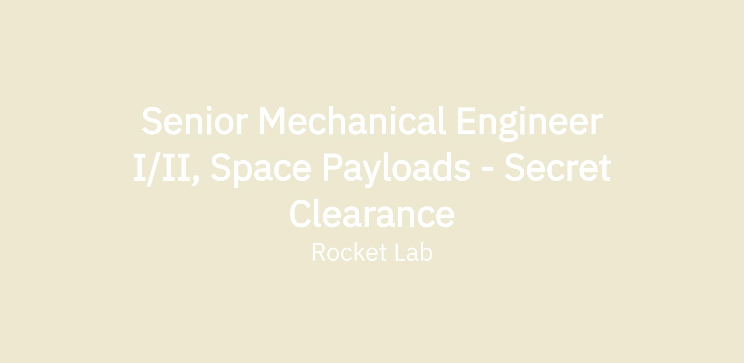 SENIOR MECHANICAL ENGINEER I/II, SPACE PAYLOADS - ACTIVE SECRET CLEARANCE