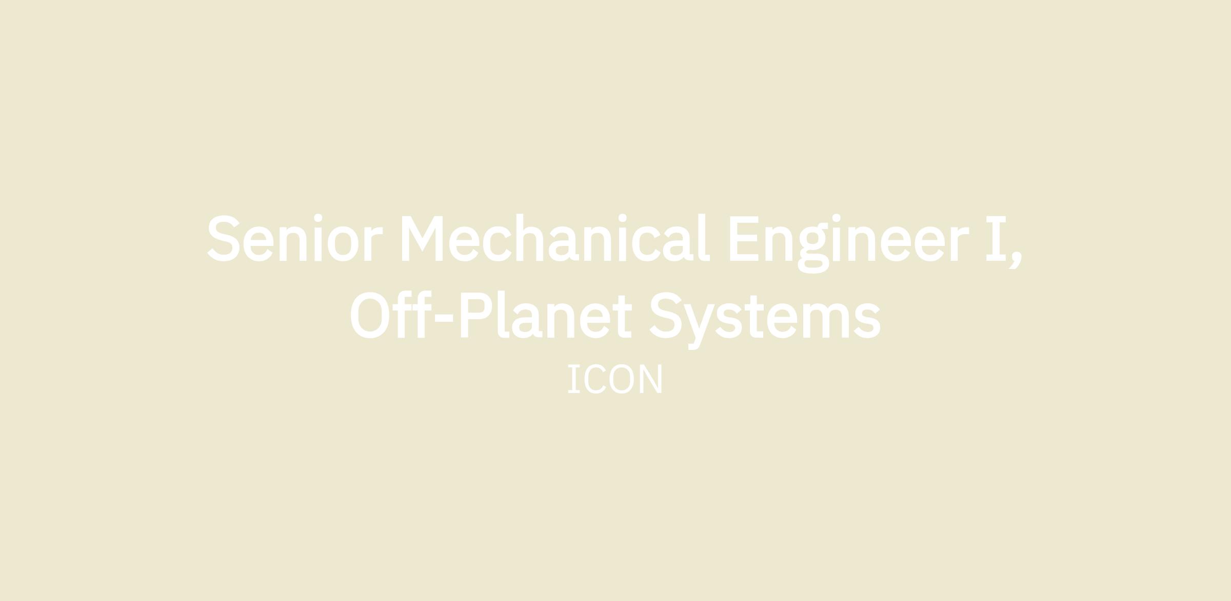 ICON is looking for a Senior Mechanical Engineer to assist in our Strategic R&D efforts. As the Mechanical Engineer for Off-Planet Robotics, you will be responsible for the development of conceptual and detailed designs of electro-mechanical systems that will be used off-planet You will also conduct trade studies and ideation exercises, participating in our design review and systems engineering processes, and ultimately flying the hardware you have designed. This role is an onsite role and is based locally in ICON’s Austin, TX laboratories, and will report to the Senior Director of Off-Planet Systems.