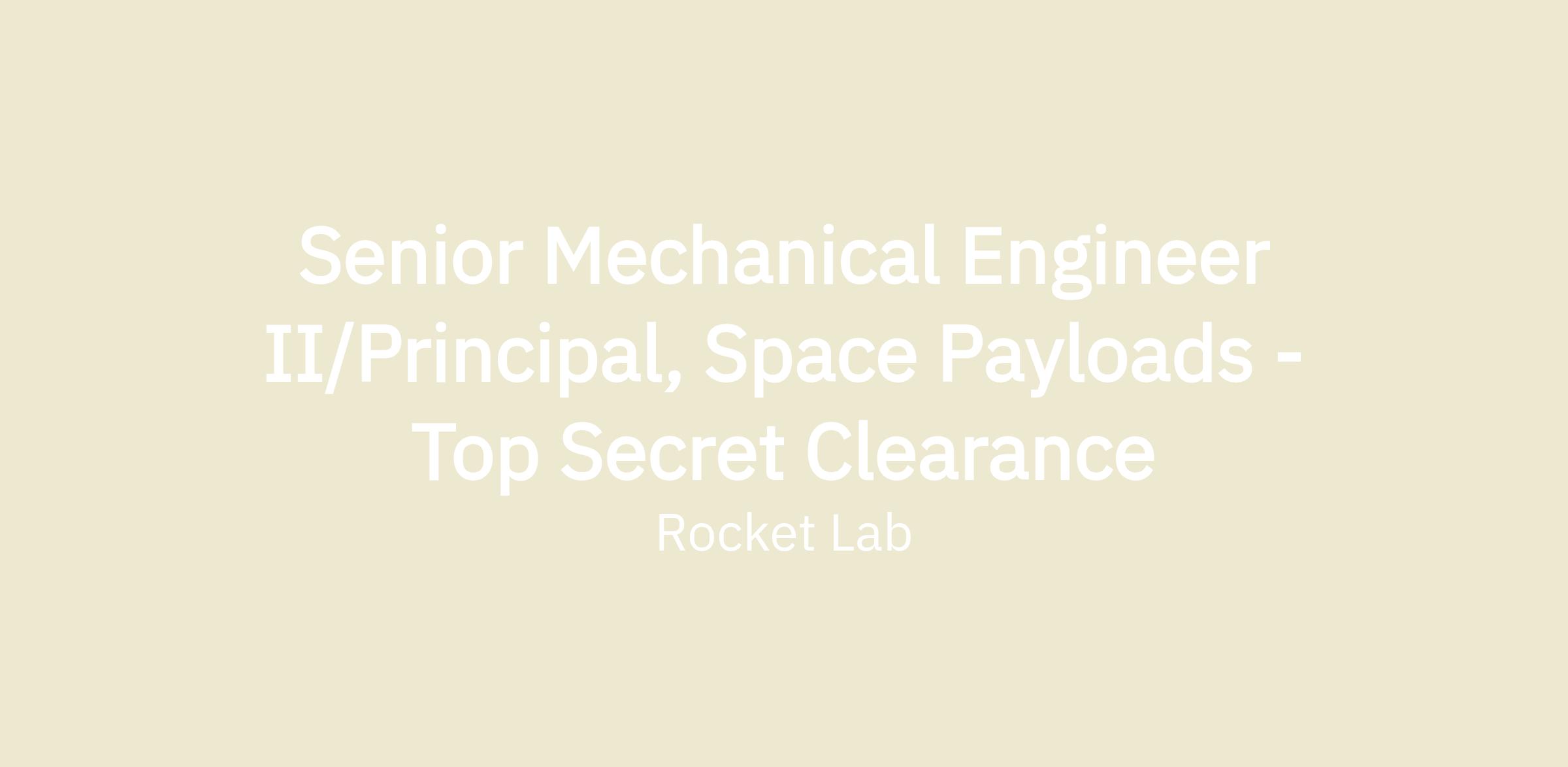 SENIOR MECHANICAL ENGINEER II/PRINCIPAL, SPACE PAYLOADS – ACTIVE TOP SECRET CLEARANCE