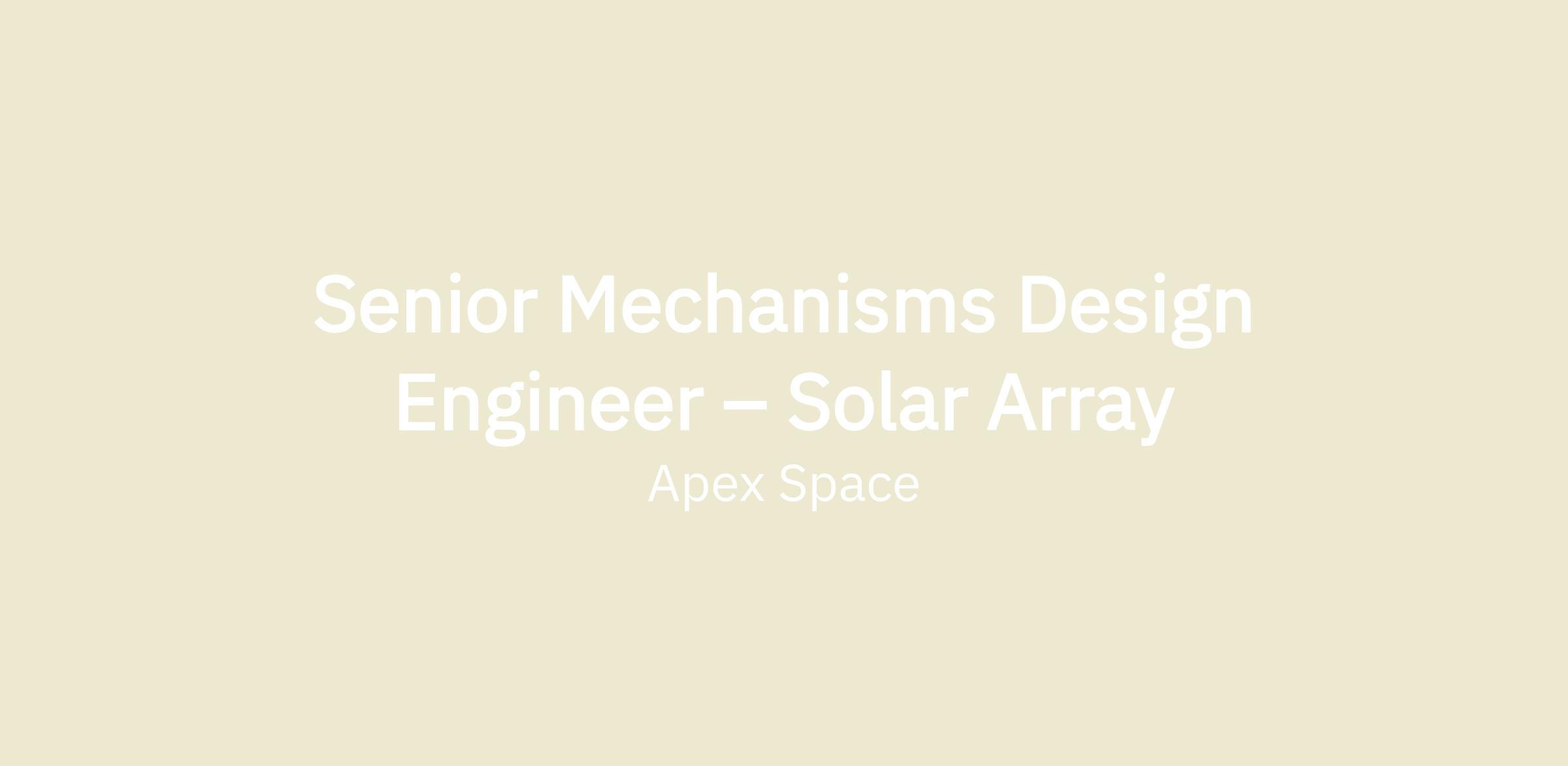 Apex is looking for a Mechanical Design Engineer – Solar Array to help us design, analyze, and qualify the mechanical systems that make our solar arrays deploy and function flawlessly. This role is deeply hands-on and highly cross-functional—you’ll go from concept sketches to flight-qualified hardware in a fast-paced environment where your work will be critical to mission success.