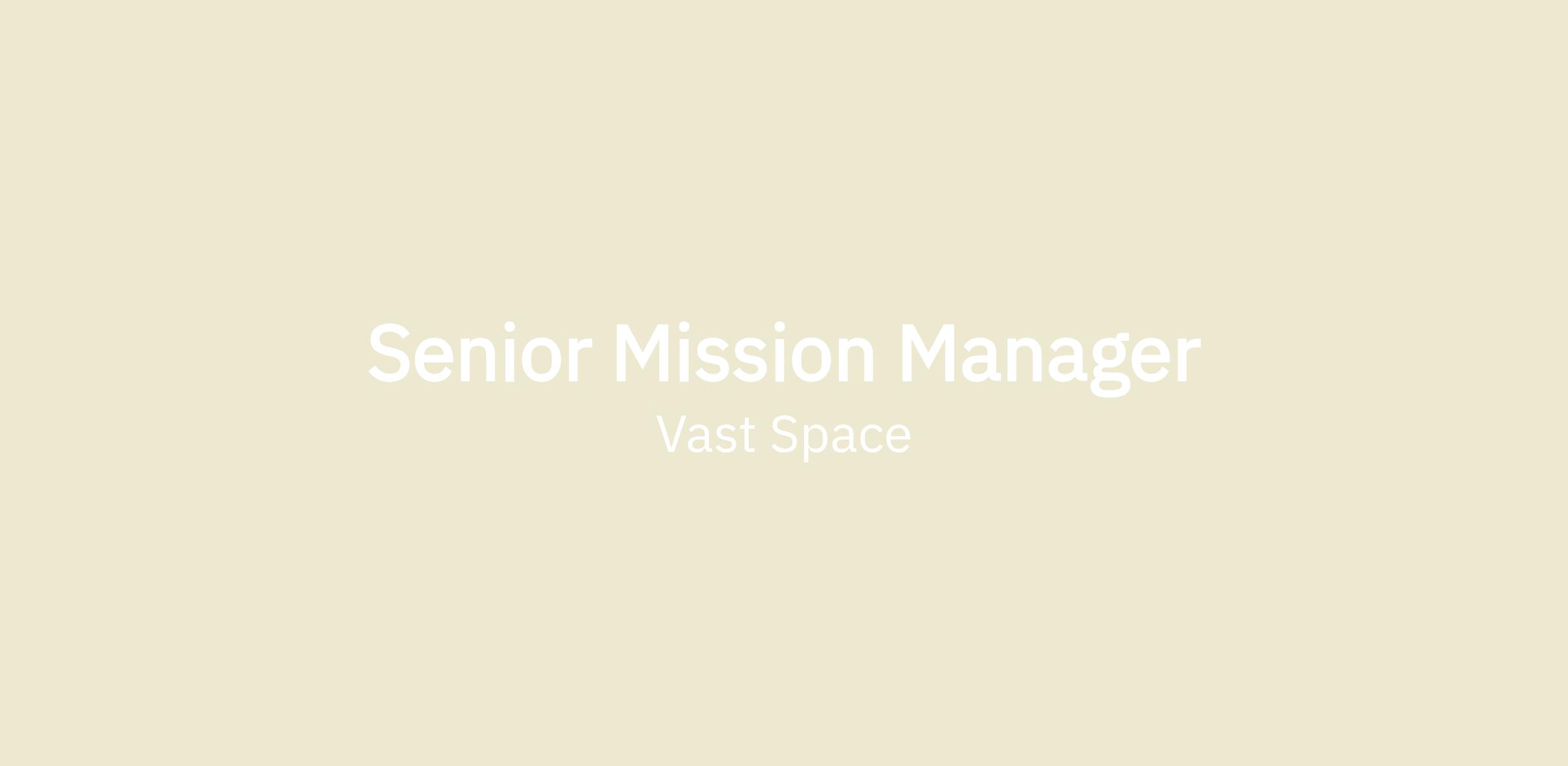 Vast is looking for a Senior Mission Manager, reporting to the Vice President of Mission Management, to support the development of the systems that will be required for the design and build of artificial-gravity human-rated space stations.