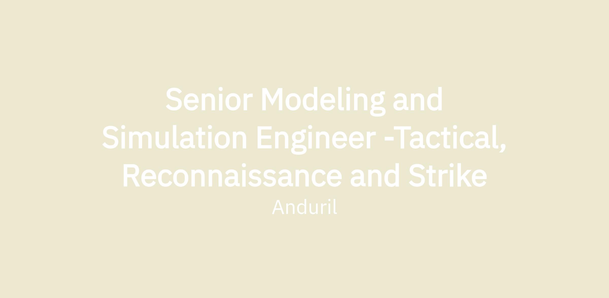 Senior Modeling and Simulation Engineer -Tactical, Reconnaissance and Strike