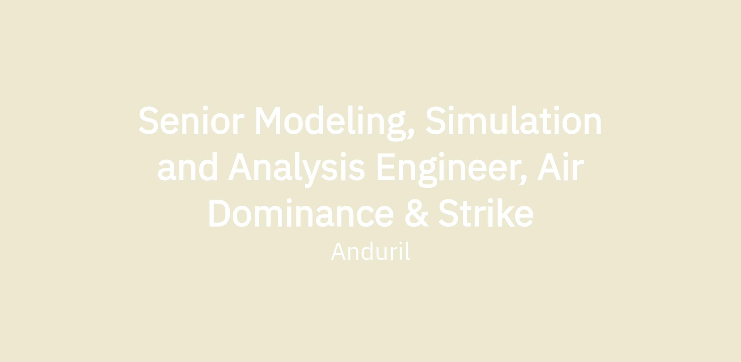 Anduril’s Flight Engineering department is part of the Air Dominance and Strike organization, we are seeking Modeling, Simulation and Analysis (MSA) Engineers to join our team. The Anduril Flight Engineering team is integral to development of flight system solutions in all domains for our warfighters. As a critical member of our team, the role of a Modeling, Simulation and Analysis (MSA) Engineer is pivotal in driving the design, development, testing, and implementation of cutting-edge flight system technologies for our aerospace systems. Anduril fosters a dynamic learning culture, characterized by accelerated knowledge acquisition through modeling, simulation, analysis, and rigorous and frequent ground and flight test experimentation. At Anduril, you will be involved in flight testing the systems you develop.
