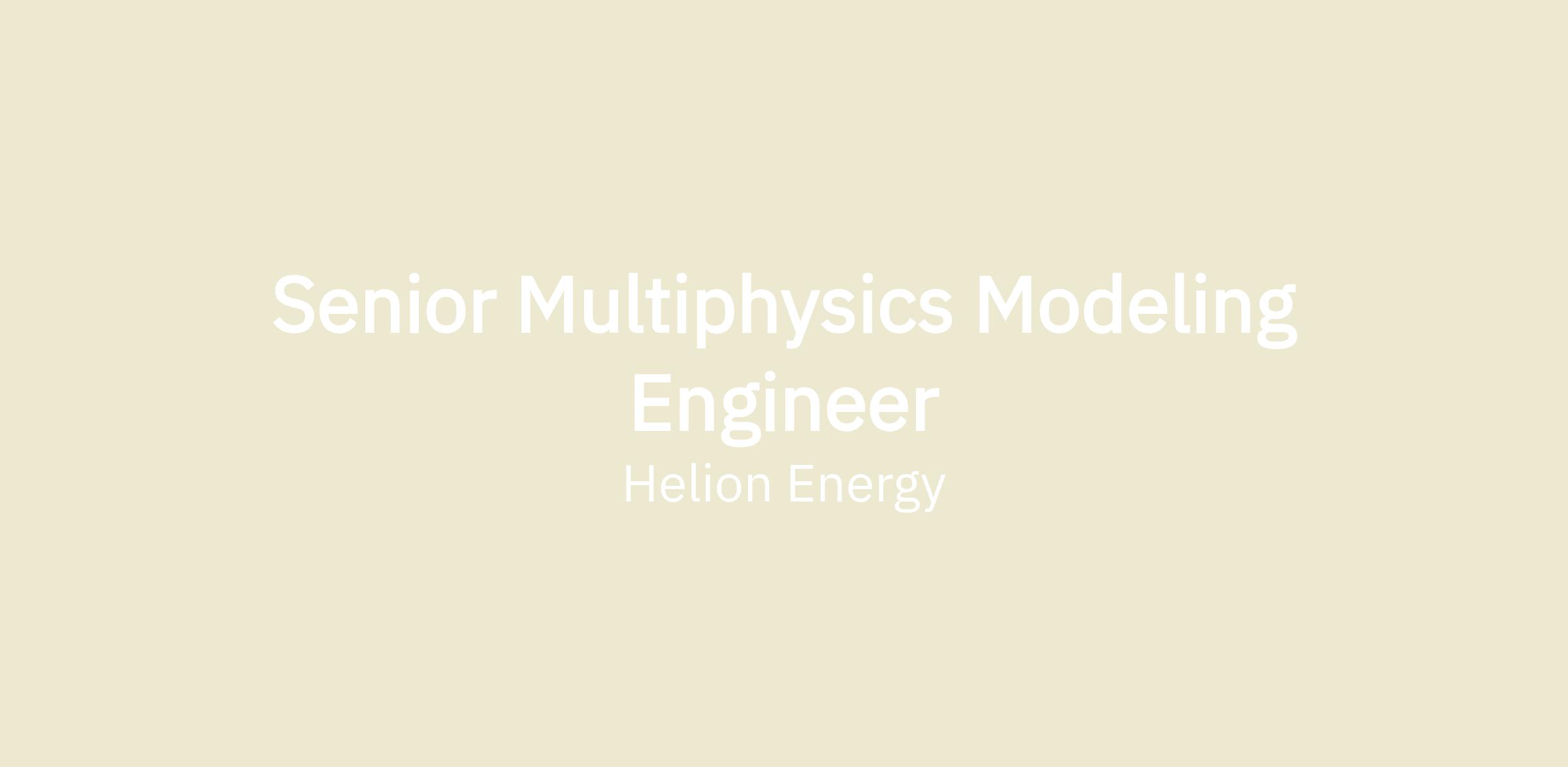 We are seeking a Senior Multiphysics Modeling Engineer to develop and validate coupled thermal–mechanical–fluid models for Helion's fusion hardware. You will bridge simulation and experimental data to inform material selection, component design, and operating limits in one of the most demanding engineered environments in the world.