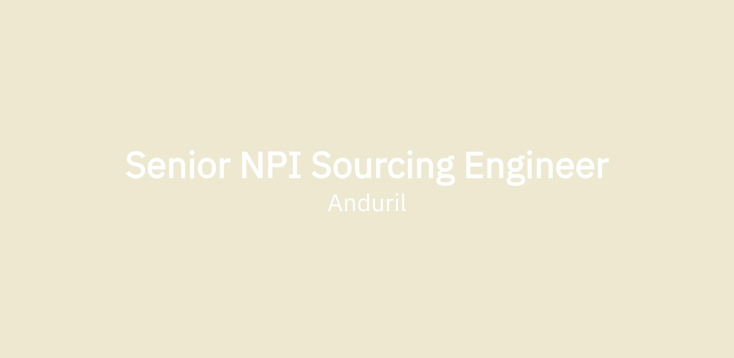 The Senior NPI Sourcing Engineer (internally known at Anduril as Senior Product Sourcing Engineer) drives the strategic supply network development and cost management of Anduril’s product hardware across their lifecycles, by collaborating with suppliers and cross-functionally, including folks in engineering, quality, and manufacturing.