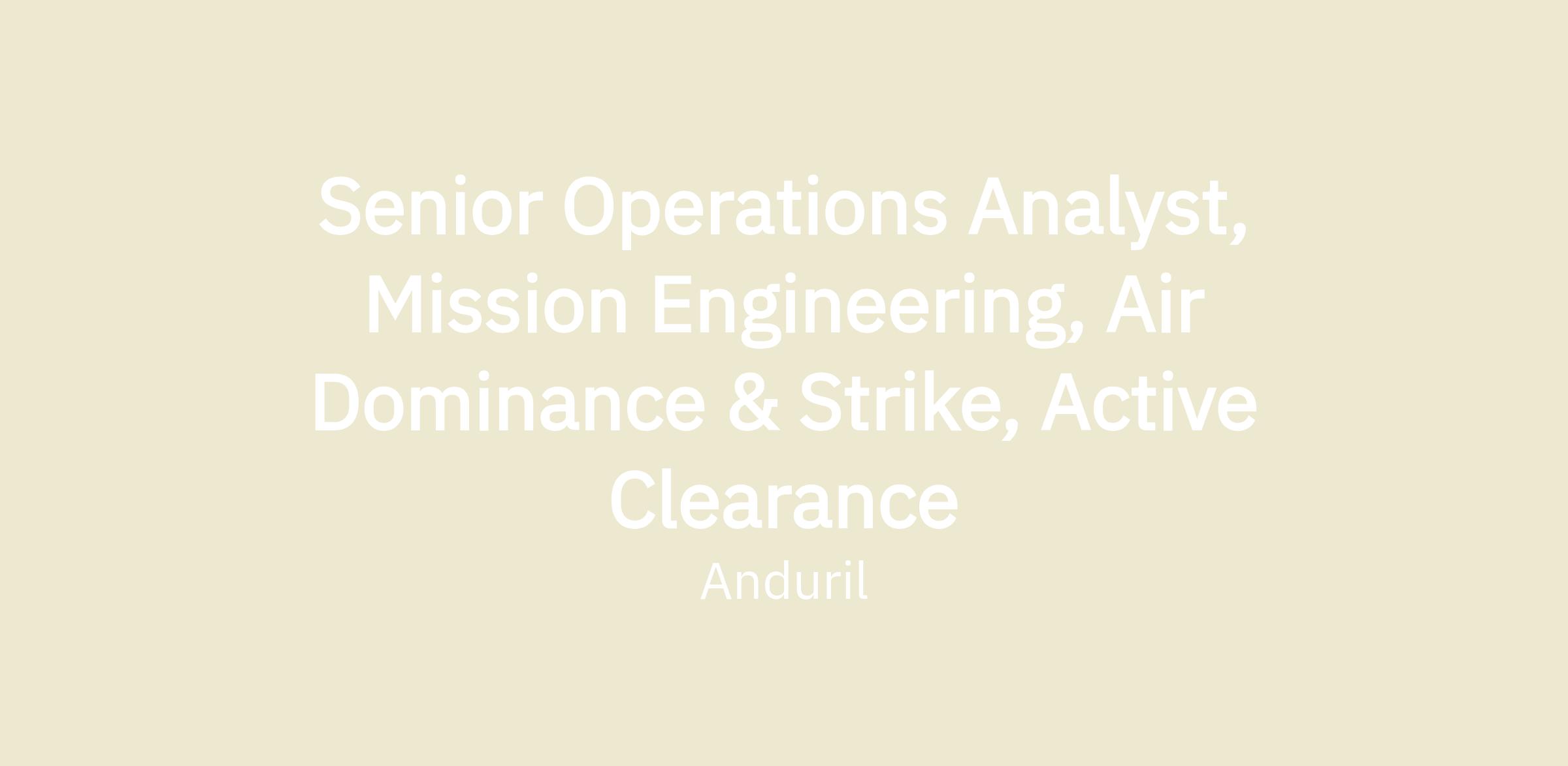 Senior Operations Analyst, Mission Engineering, Air Dominance & Strike, Active Clearance