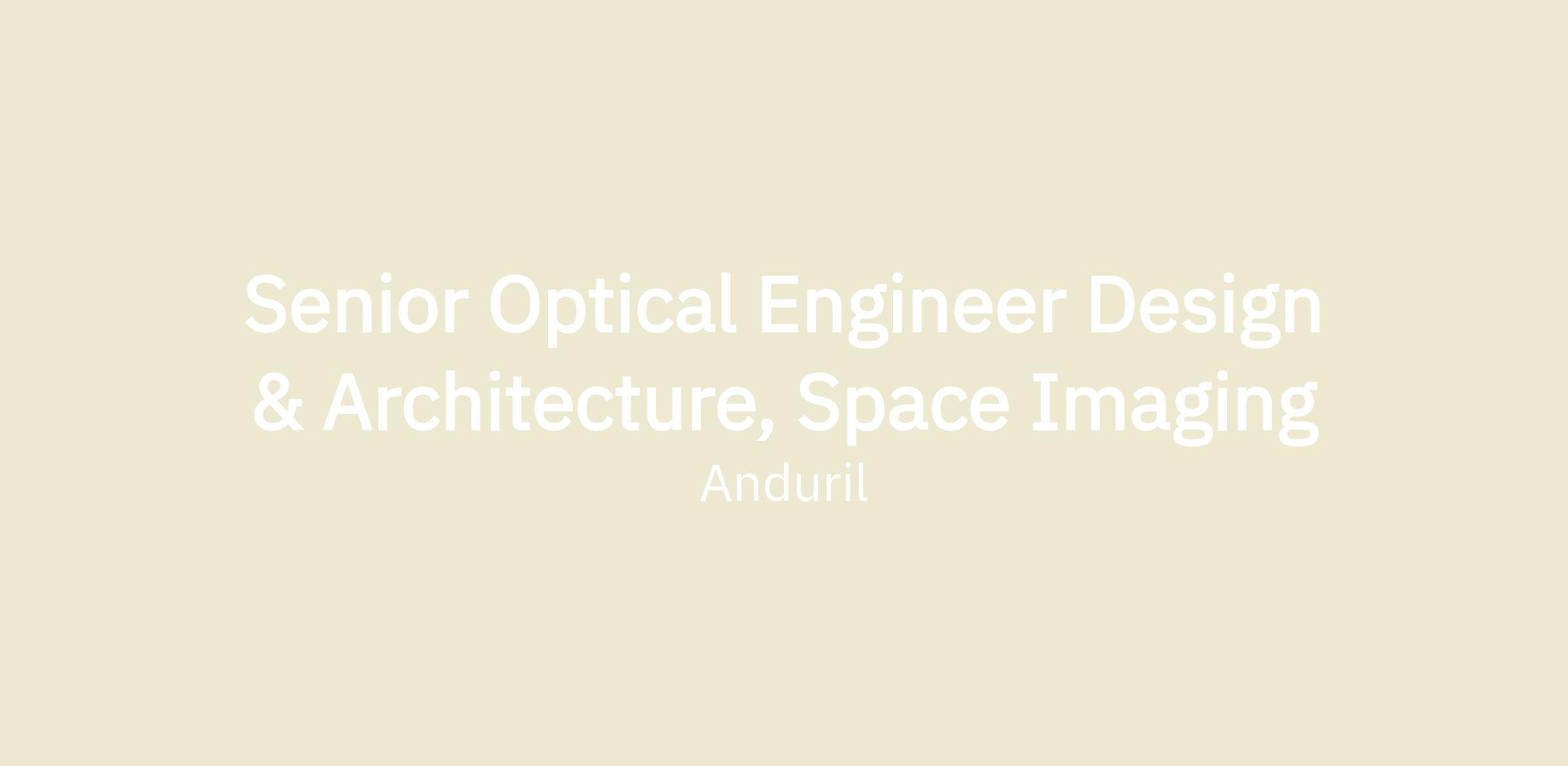 Senior Optical Engineer Design & Architecture, Space Imaging