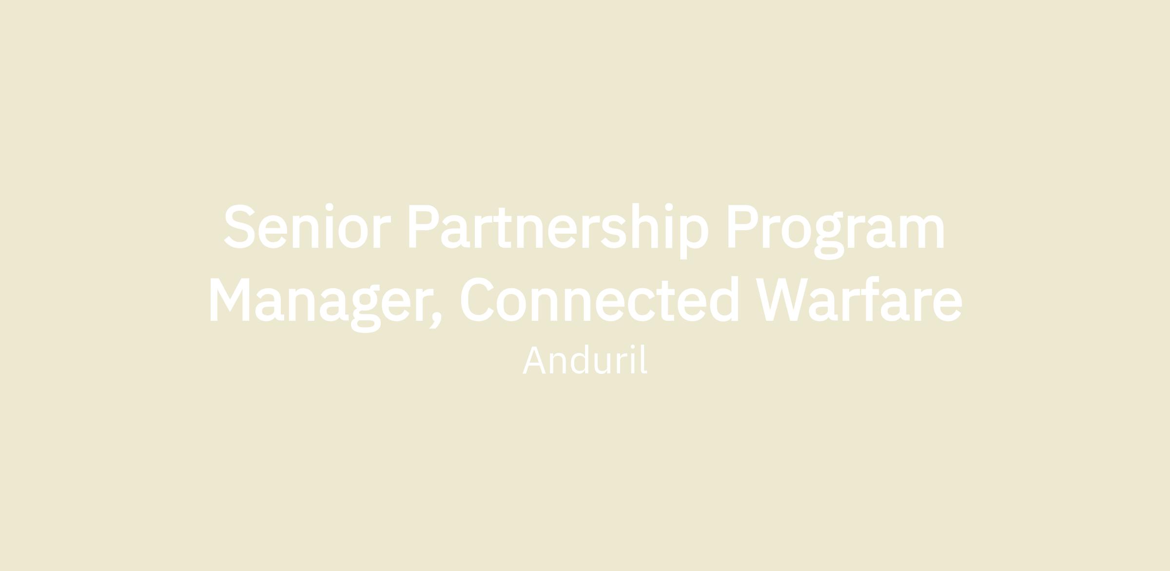 We are seeking an experienced Senior Partnership Program Manager to lead efforts across our Connected Warfare business line, which builds systems to support global command and control missions. We create joint, time sensitive, multi domain, ubiquitous, connected mesh ecosystems. Our ecosystem enables connected warfare with disproportional impact by connecting every robot, human, and sensor in every domain, bringing together hundreds of thousands of end points across the globe. We are the substrate that provides the source of truth for time sensitive decision, effectively transforming the way that militaries close kills chains and enable mission autonomy.