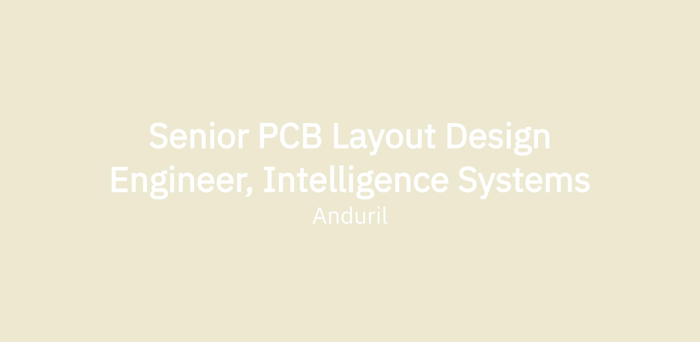 - Work directly with engineers to produce printed circuit board designs supporting Anduril’s products