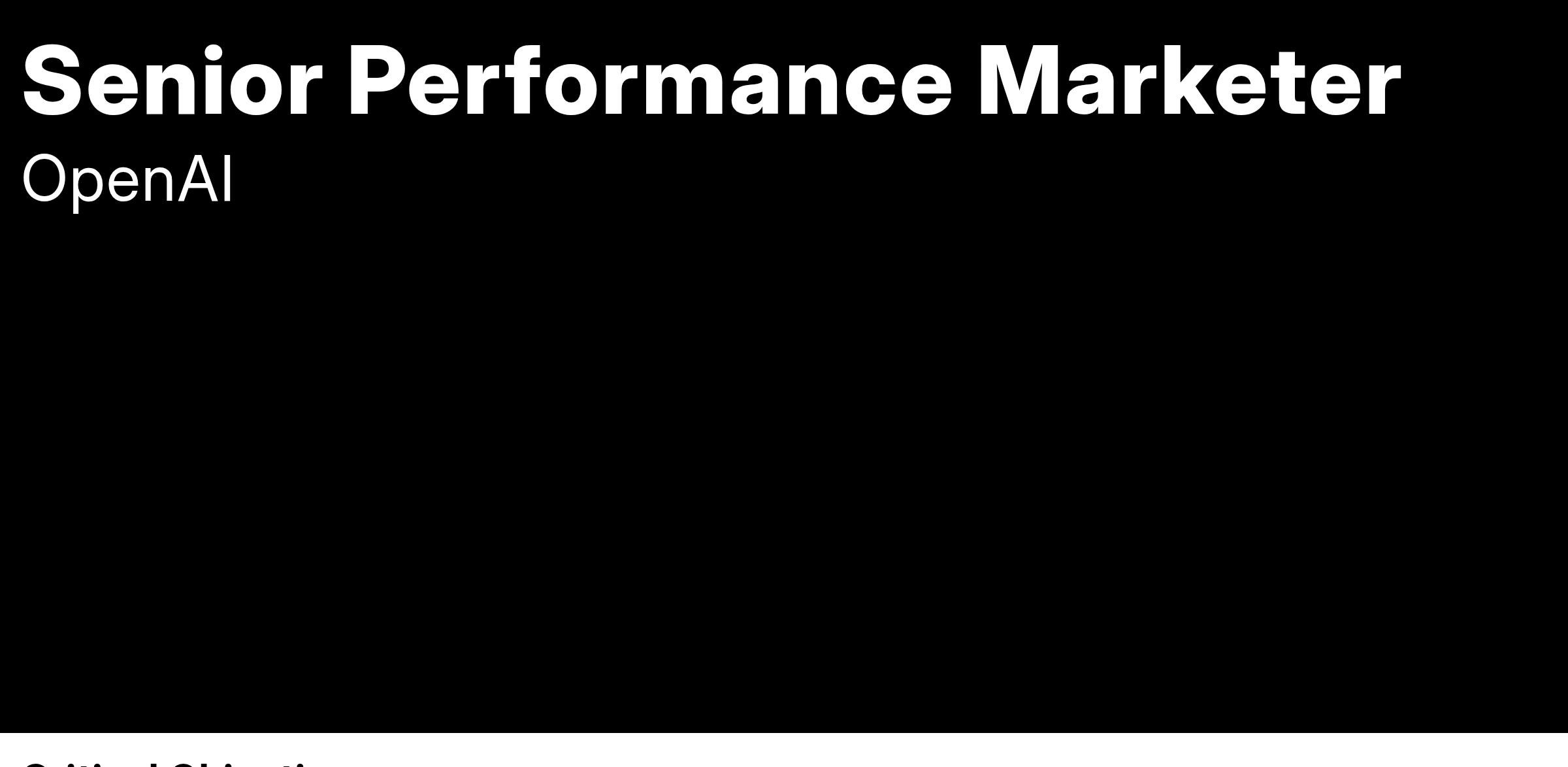 OpenAI is on a mission to ensure that artificial intelligence benefits all of humanity. We’re seeking a seasoned Performance Marketing leader to spearhead our growth efforts and chart the course for how we acquire, engage, and delight users globally. As a foundational member of the team, you'll establish our digital marketing strategy and drive measurable growth across existing channels while validating and scaling new channels. The ideal candidate combines strategic leadership with hands-on execution skills, bringing deep B2C and B2B expertise to help us drive rapid growth in a fast-paced environment.