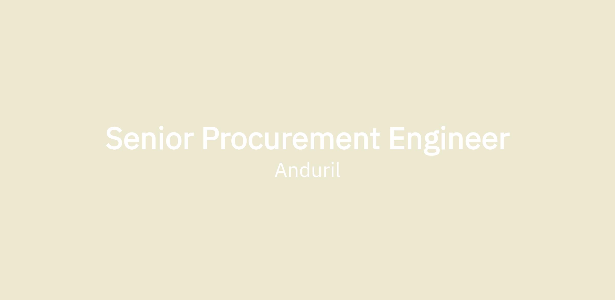 The Senior Procurement Engineer (internally known at Anduril as Senior Product Sourcing Engineer) drives the strategic supply network development and cost management of Anduril’s product hardware across their lifecycles, by collaborating with suppliers and cross-functionally, including folks in engineering, quality, and manufacturing.