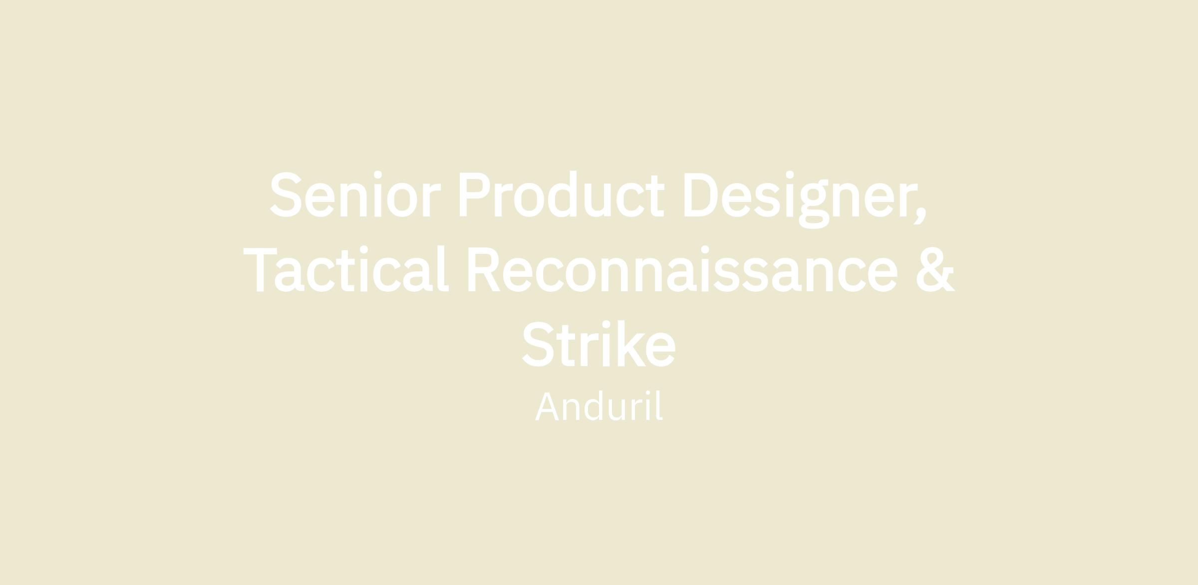 The centralized Software Product Design & Research team serves as the connective tissue across Anduril's ecosystem of software experiences – ensuring that products and workflows scale thoughtfully across platforms, mission types, and domains. You will join the central team as a mission product designer – deployed to support Anduril's Tactical Reconnaissance & Strike organization alongside another designer focused in this domain. Together, you will own the design direction for mobile and web experiences that enable tactical operations, working closely with specialized stakeholders including autonomous systems engineers, product managers, and end users in mission-critical environments. As part of the central team, you'll maintain full access to the broader design community for critique, collaboration, and knowledge sharing while building deep expertise in a specialized operational domain that has immediate real-world impact.