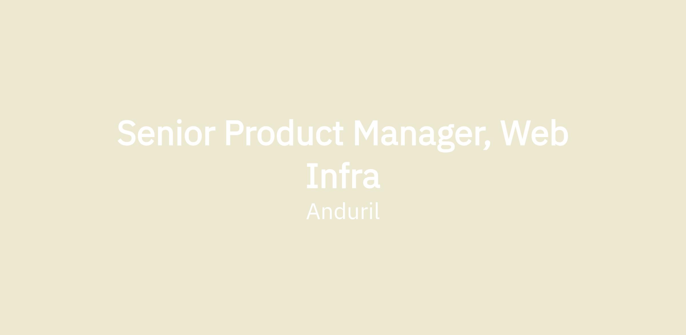 We're looking for a technical Product Manager to drive major initiatives within our Web Infrastructure team. This team owns the systems that power both Lattice product infrastructure as well as general web build infrastructure for Anduril. These systems enable application development at scale. In this role, you'll lead critical initiatives that require both product thinking and deep technical coordination across teams.
