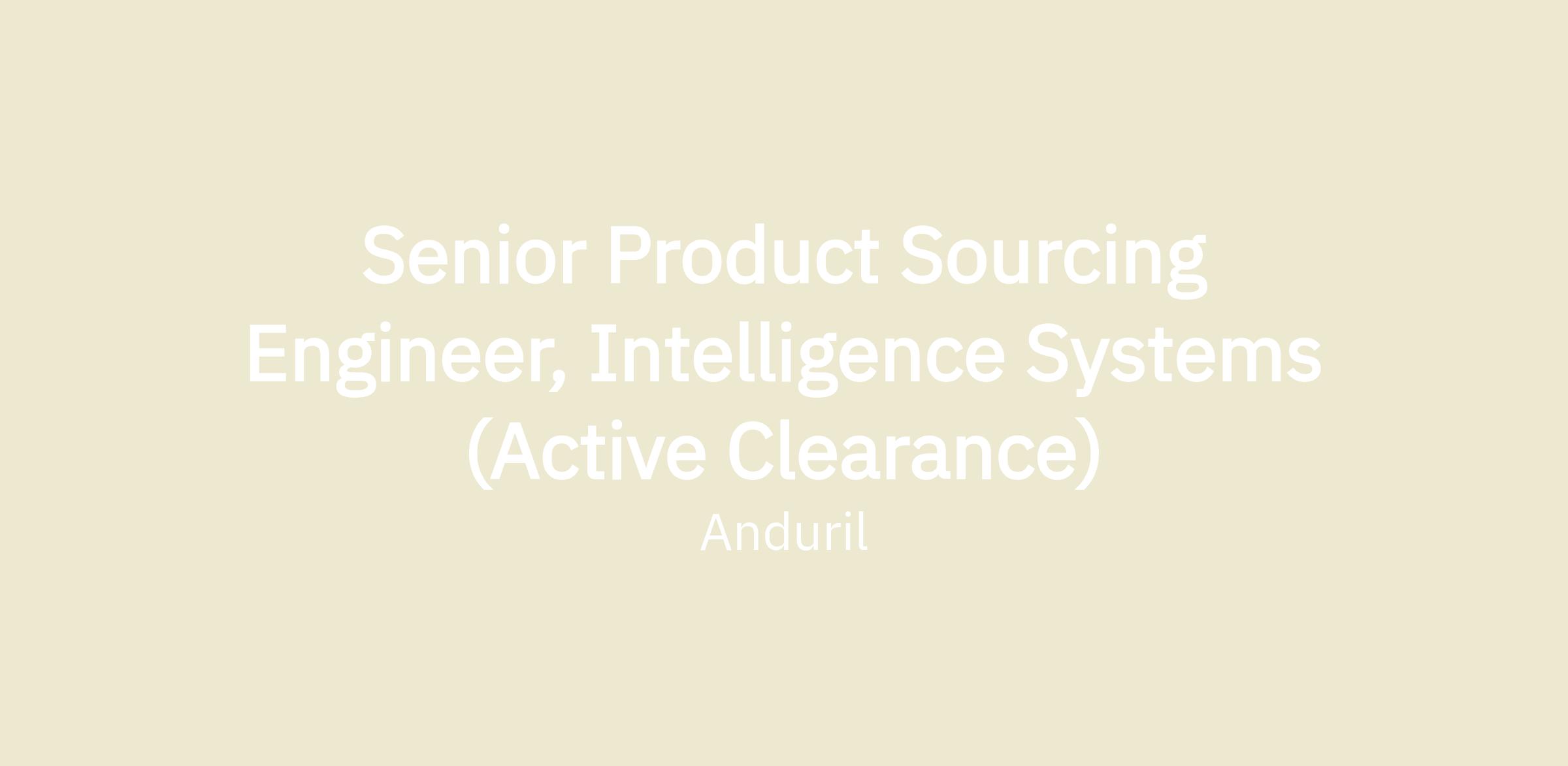 The Senior Product Sourcing Engineer for Intelligence Systems, drives the strategic supply network development and cost management of Anduril’s product hardware across their lifecycles, by collaborating with suppliers and cross-functionally, including folks in engineering, quality, and manufacturing. You will be the end to end owner of supply chain for the Anduril Intelligence & Space business line, responsible for engineering support, vendor onboarding & development, as well sourcing, pricing, and negotiating for the total Bill of Material (BOM)