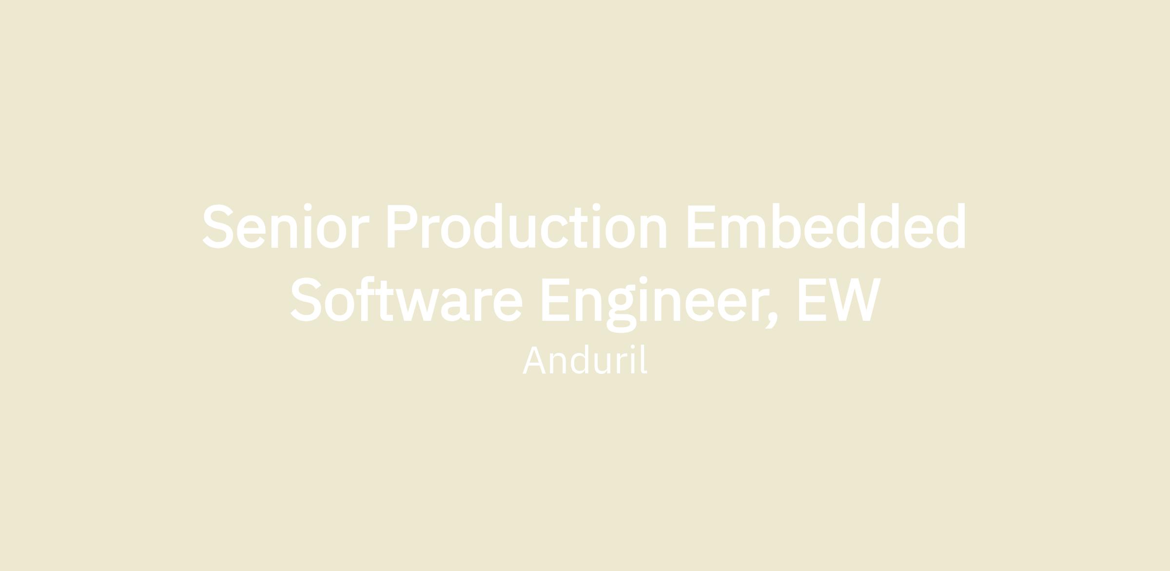 Anduril’s Electronic Warfare (EW) team is seeking an experienced embedded software engineer to support next-generation electronic warfare platforms in production. As a Production Embedded software engineer, you’ll develop and maintain EW product software specific to a production environment, collaborate with manufacturing and test automation engineers to improve testability, and collaborate with the wider embedded software organization to ensure a seamless new product introduction.