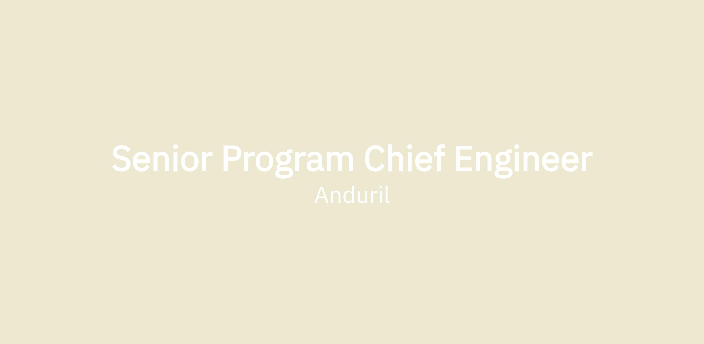 We're seeking a Program Chief Engineer to join our rapidly growing team in Irvine, CA. This role provides an opportunity for immediate impact on real-world operations. Our focus is on creating groundbreaking technology that operators need and trust, and all your work will feed into this. You will go deep to learn about gaps in existing defense capabilities, engage with users, synthesize feedback, and build the product infrastructure to support our goals. Anduril is a rapidly growing company, and the right person for this role should be able to work in partnership with engineers and leadership, and thrive in a fast-paced environment with many competing priorities. You often will be expected to self direct, and to be comfortable navigating ambiguity. You will quickly take ownership of an Air Defense Program to solve specific challenges, craft your own vision for what the technical success of that initiative looks like, and own the execution of that vision through cross functional execution.
