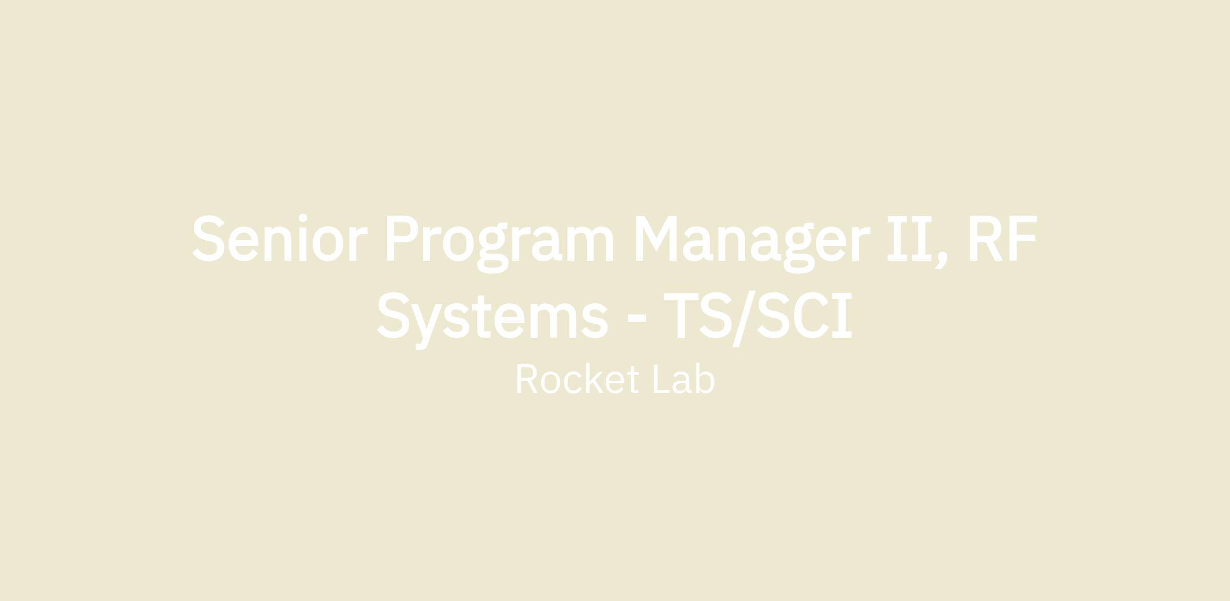 SENIOR PROGRAM MANAGER II, RF SYSTEMS - TS/SCI