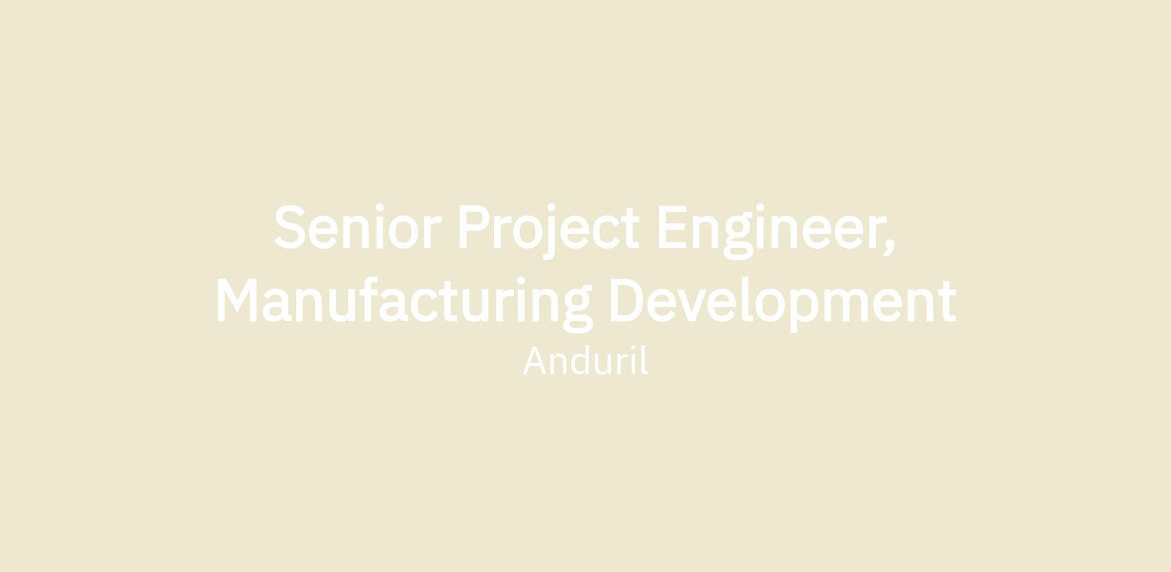 Anduril’s Manufacturing Development team is seeking a Senior Manufacturing Development Project Engineer to grow and implement the Manufacturing Development Process (MDP) – a comprehensive framework that enables Manufacturing Engineering teams to pull production readiness to the left and produce effectively at scale.