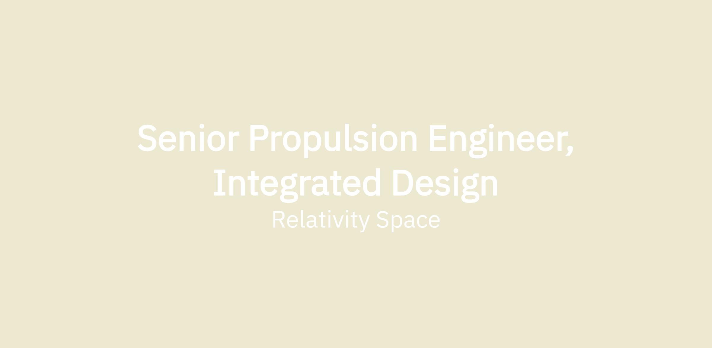 Senior Propulsion Engineer, Integrated Design