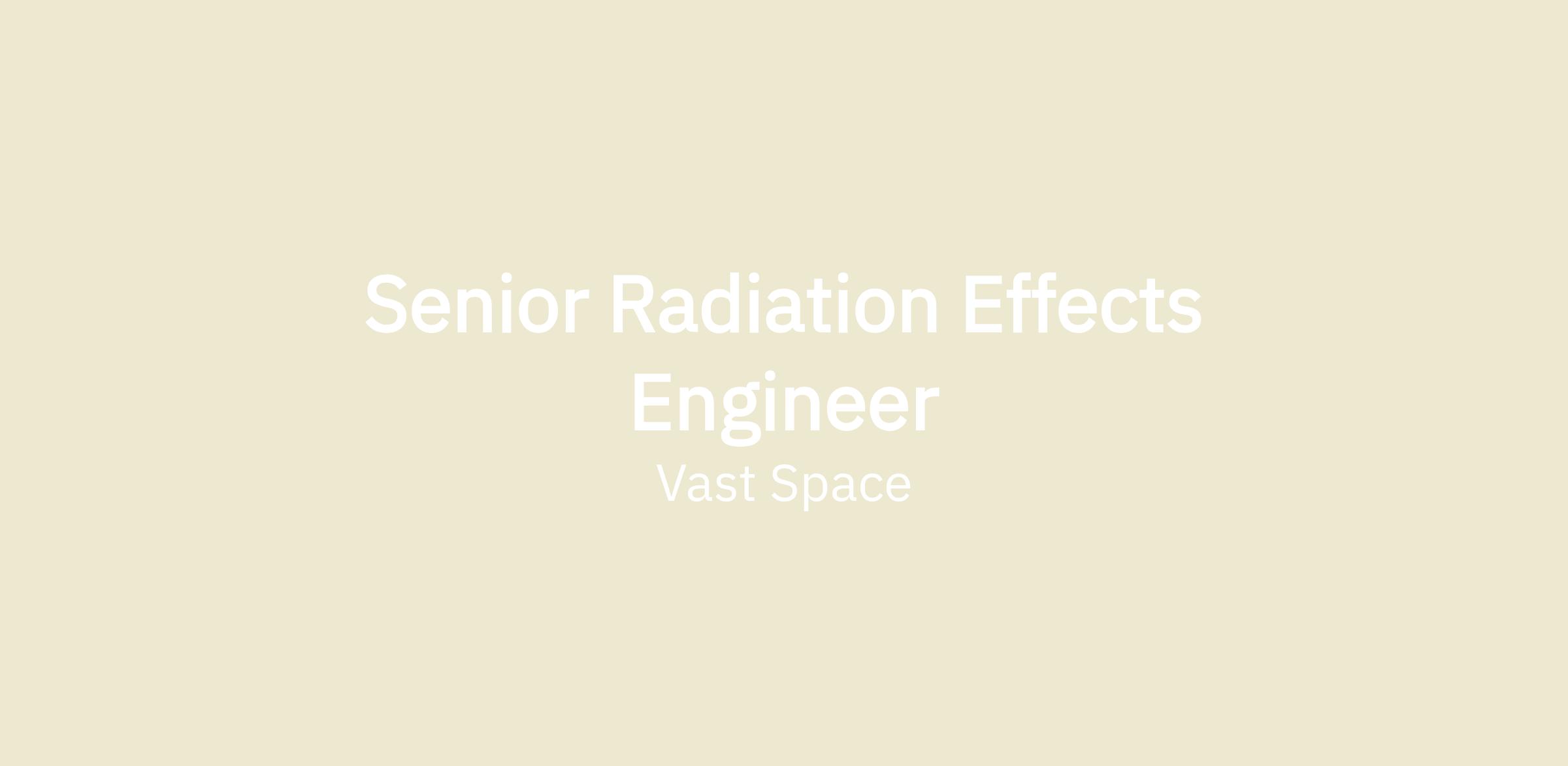 Vast is looking for a Senior Radiation Effects Engineer, reporting to the Senior Director, Avionics Hardware Development, to support the development of the systems that will be required for the design and build of artificial-gravity human-rated space stations.