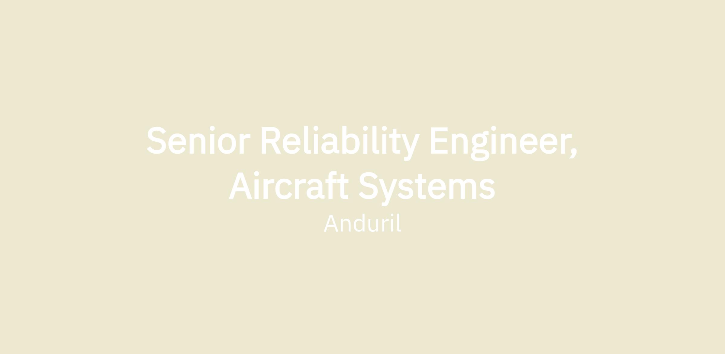 The Reliability Engineering team at Anduril collaborates with our broader Engineering organization to ensure our products meet or exceed mission performance requirements, withstand challenging environmental conditions, and satisfy all customer specifications. We develop and implement cutting-edge Reliability processes and methodologies to secure scalable, long-term business success. As a Reliability Engineer, you will leverage your extensive knowledge of advanced Reliability tools and methodologies to drive excellence in our Reliability programs. You will support the Systems, Hardware, & Software Engineering teams across the product development lifecycle by guiding Failure Modes & Effects Analysis, predictive analysis, qualification test planning, field performance monitoring, and root cause & corrective action activities for your product(s). The right person for this role has knowledge of design and development with a reliability focus on unmanned aircraft systems, as well as exposure to test, analysis, manufacturing, and continuous improvement in a production environment. If you are someone who has hands-on experience throughout the new product development life cycle from concept to customer delivery, loves to build world-class Reliability processes, can work efficiently across multi disciplinary teams, and be accountable for results, then this role is for you.