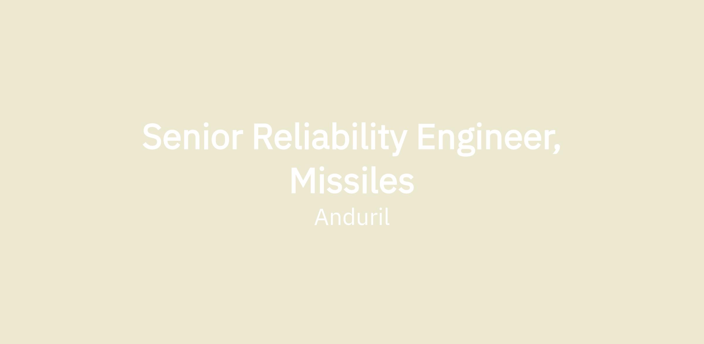 Anduril's Reliability Engineering organization is seeking an experienced Reliability Engineer to join our team in support of our Advanced Effects product line. The Reliability Engineering team collaborates with our broader Engineering organization to ensure our products meet or exceed mission performance requirements, withstand challenging environmental conditions, and satisfy all customer specifications. We develop and implement cutting-edge Reliability processes and methodologies to secure scalable, long-term business success.
