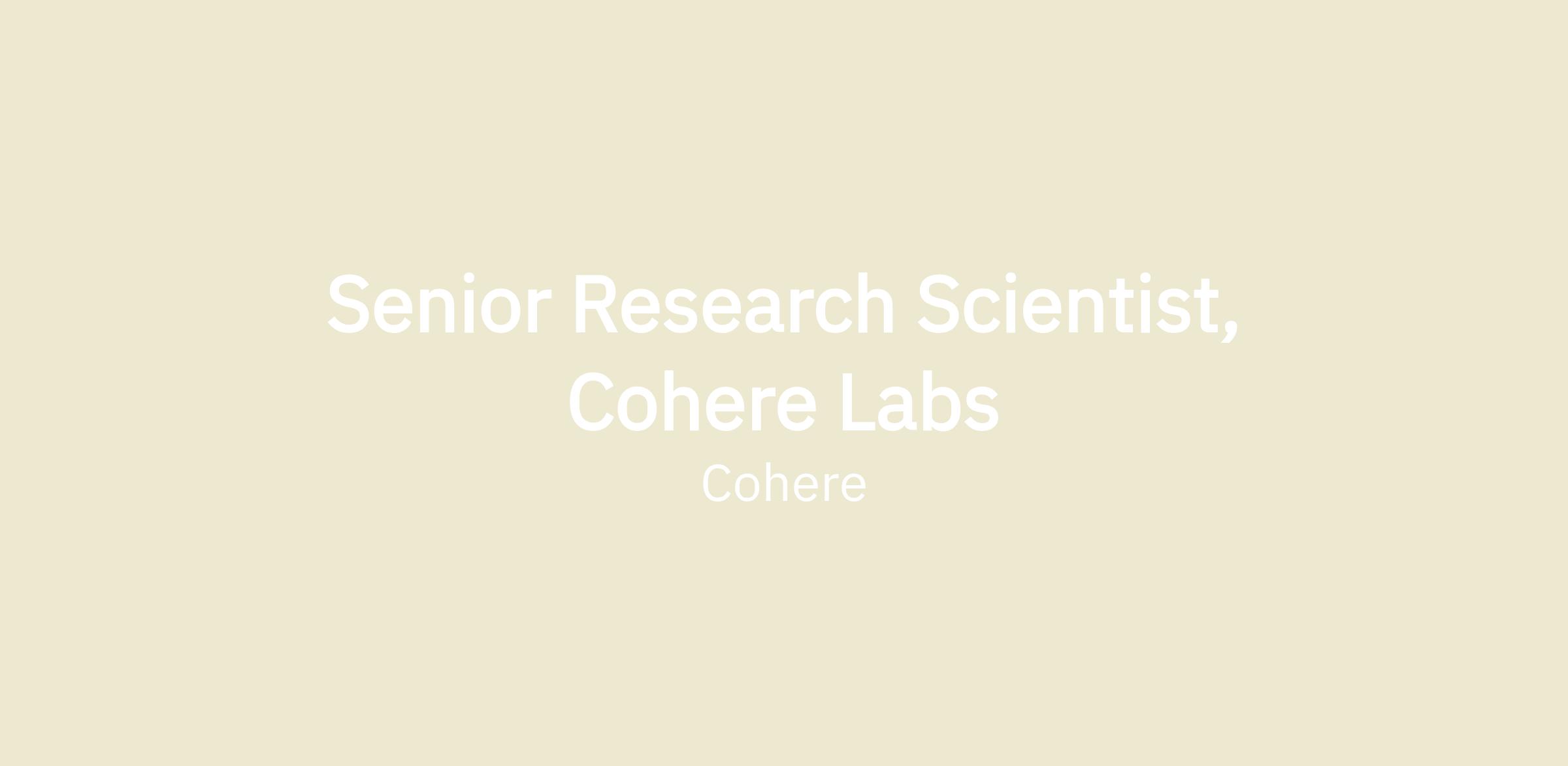 As a Senior Research Scientist at Cohere Labs, you’ll drive an independent, high-impact research agenda on frontier topics in AI. You’ll have the freedom to ask ambitious questions, explore the unknown, and publish your findings openly. We’re particularly excited by work that not only advances science, but also engages with the societal implications of machine learning.