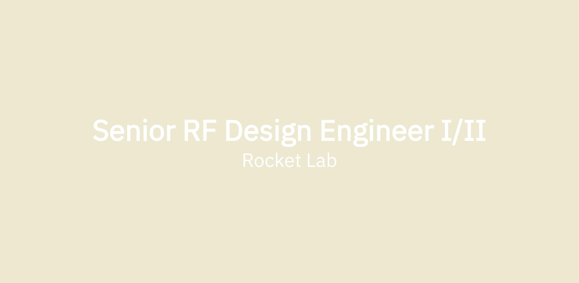 We are currently seeking a Senior RF Design Engineer I/II based onsite at Rocket Lab's global headquarters in Long Beach, CA. The Senior RF Design Engineer will be responsible for supporting the development of new RF products including Rocket Lab’s radio product line alongside the radio development team. The Senior RF Design Engineer will design and simulate RF products including the Frontier-Lite Radio. The successful candidate will have a strong combination of RF engineering, system design, and board/circuit design skills and will thrive in a fast-paced, dynamic environment.