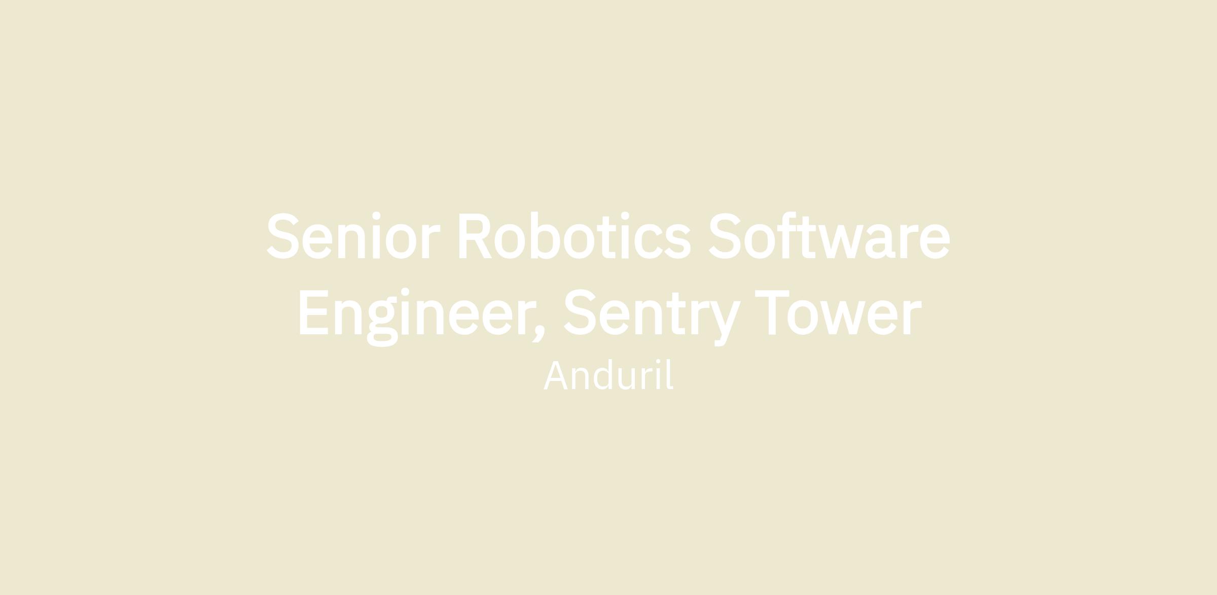 We are looking for a Senior Robotics Software Engineer to join our rapidly growing team in Irvine. In this role, you will be responsible for building and maintaining software for current and next-generation Sentry Tower systems. This will include interacting with stakeholders such as Anduril's business lines of Air Defense and Counter Intrusion all the way from internal engineering customers to the people in the field and prioritizing what is important to create an excellent experience for them in the long run. If you are someone who is driven to built great robots, then this role is for you.