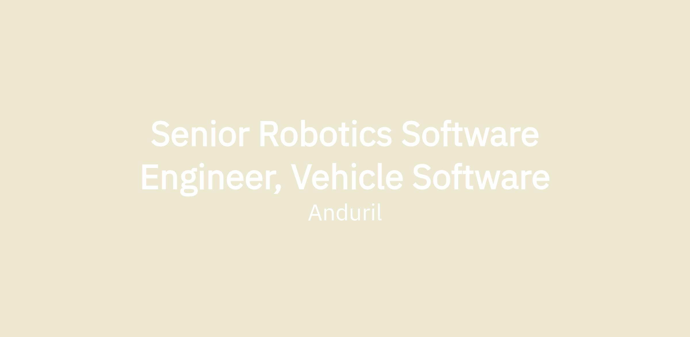 Senior Robotics Software Engineer, Vehicle Software