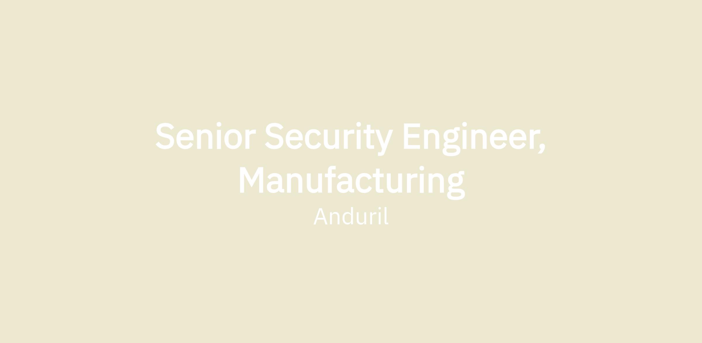 Senior Security Engineer, Manufacturing