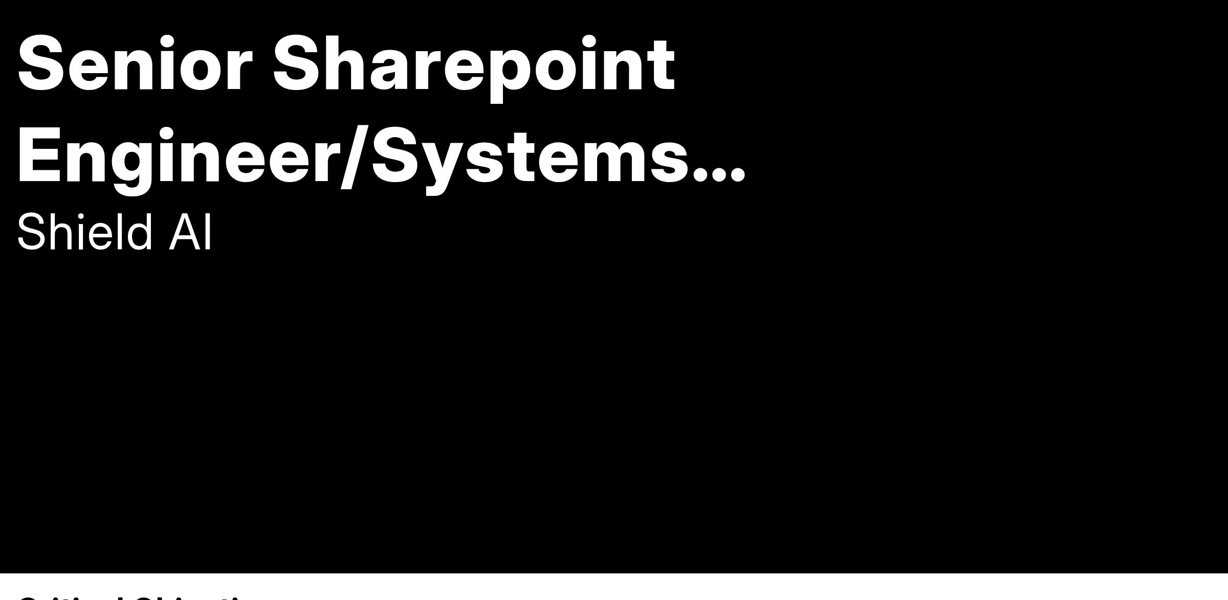As a Senior SharePoint Engineer, you’ll be at the heart of building and optimizing our SharePoint environment within Azure Government. You’ll play a pivotal role in enhancing collaboration, streamlining workflows, and ensuring compliance with stringent DoD security standards. Your work will help empower teams across Shield AI to achieve operational excellence and create a safer, more secure world.