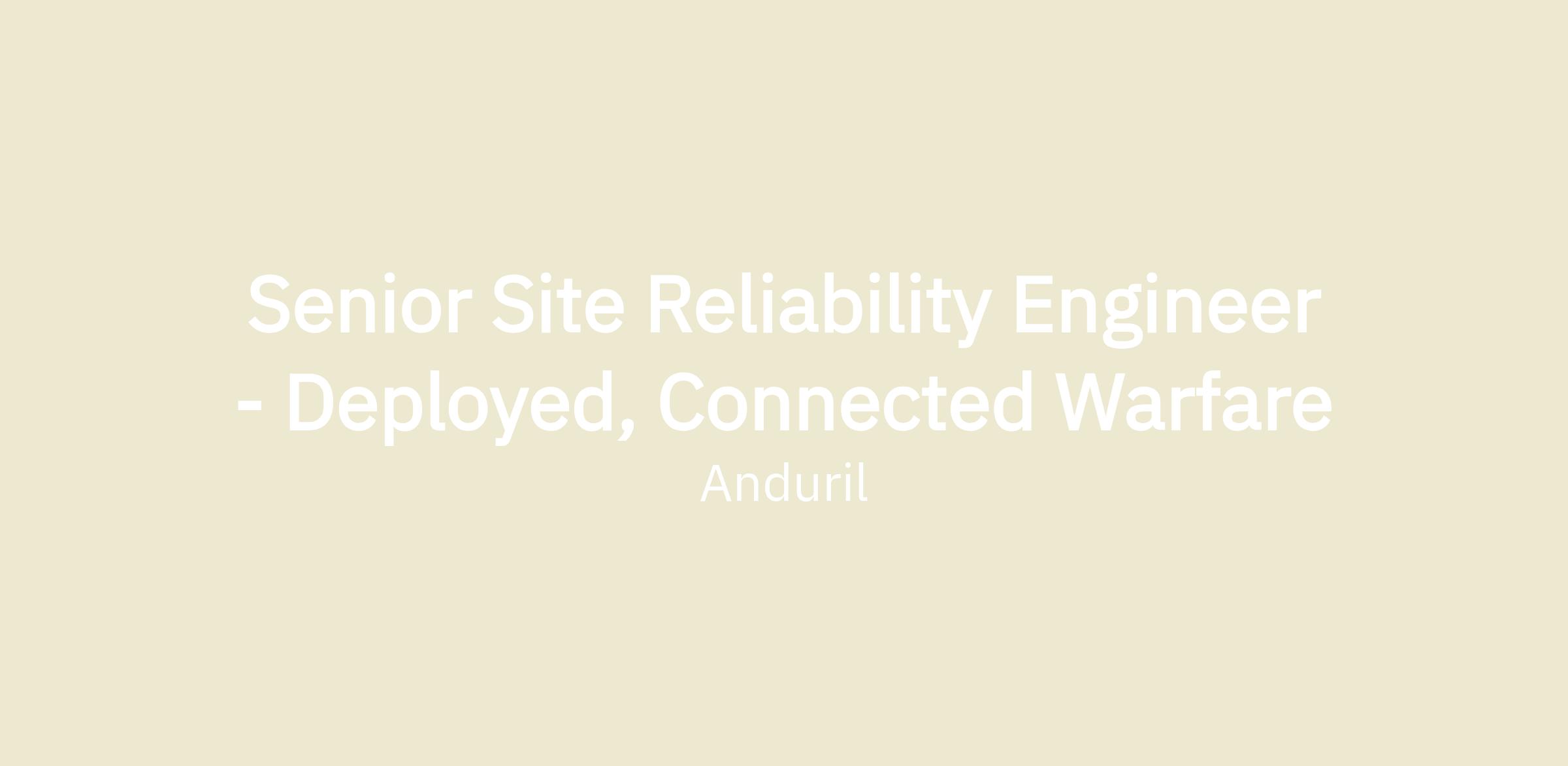 Senior Site Reliability Engineer - Deployed, Connected Warfare