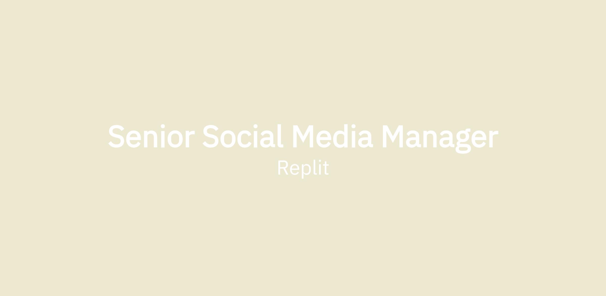 We're looking for a highly strategic and data-driven Head of Social Media to own and optimize our social media follower acquisition and conversion across Replit's mobile app and website properties. As the first Head of Social Media hire focused on our community conversion and activations, you'll work directly with our Head of Marketing and collaborate closely with GTM, Product, Engineering, Support, Product Marketing, and Design teams. This role requires someone who thrives in a fast-paced, test-and-learn environment and has successfully scaled conversion programs from 0-to-1 across all major Social Channels: Twitter/X, Meta (Facebook/IG), TikTok, Reddit, and LinkedIn.