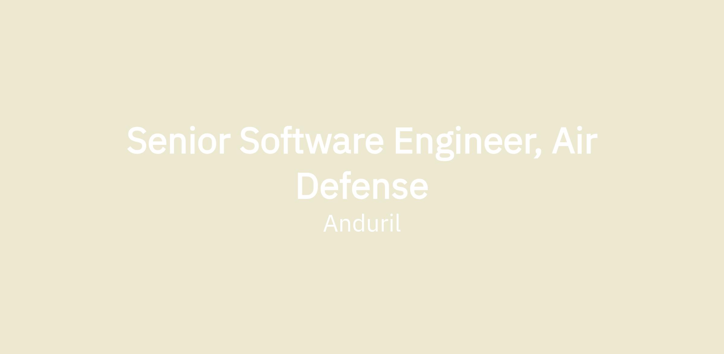 The Air Defense team builds robots that find other robots and knock them out of the sky. At a time when air superiority can no longer be taken for granted, the Air Defense Team provides mission critical capabilities to warfighters. From detection to tracking, identification, deterrence, and defeat, our family of networked sensors and effectors enables our customers to rapidly close the kill chain against a broad range of Unmanned Aerial System (UAS) threats. Working across product, engineering, sales, logistics, operations, and mission success, the Air Defense team develops, tests, deploys, and sustains the Anduril Air Defense Family of Systems (FoS) in challenging operational environments worldwide.