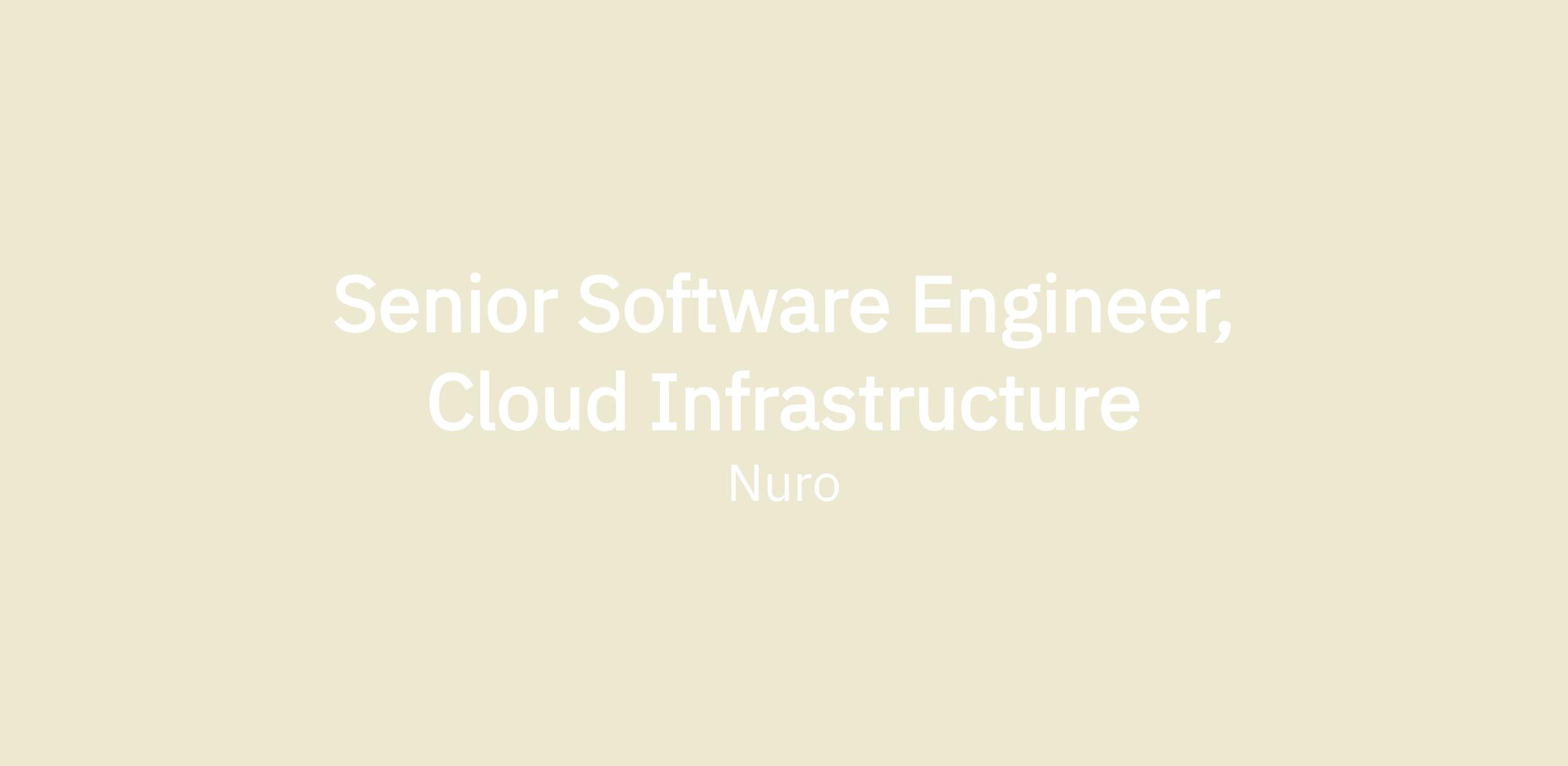 We are looking for a Software Engineer (Cloud Infrastructure) to join Nuro's growing Infrastructure team.