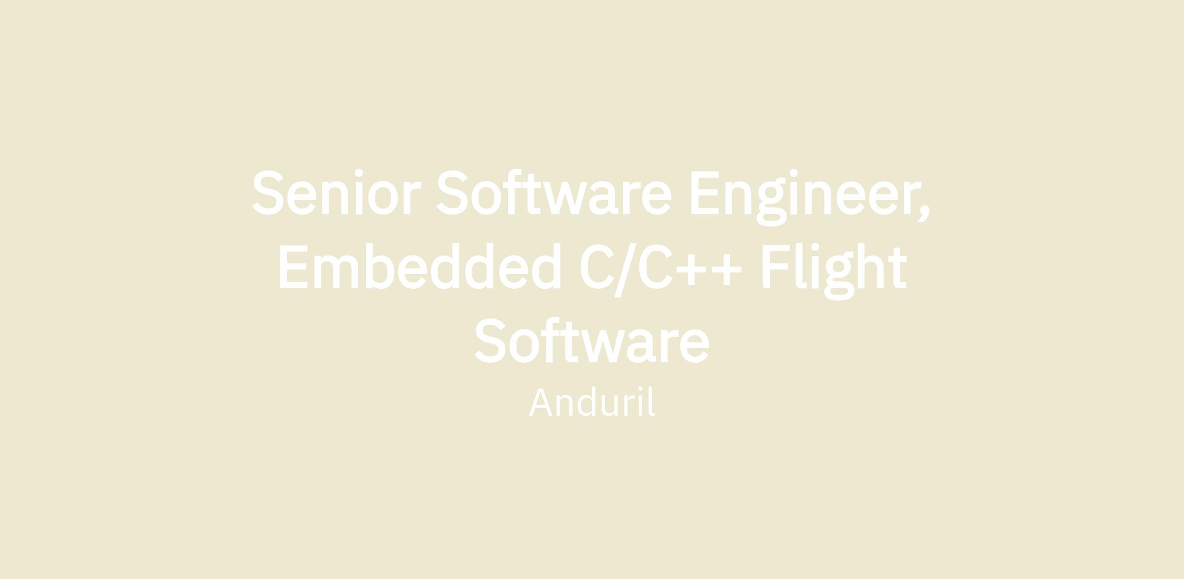 At Anduril, our Software Engineers are at the forefront of defense technology, crafting high-impact, cutting-edge solutions that redefine innovation. You'll dive into a diverse range of projects, partnering with brilliant minds across disciplines to engineer robust software systems that empower our mission-critical operations. We're seeking talented Embedded C/C++ Flight software engineers on several teams to contribute to projects that are shaping the future of defense.