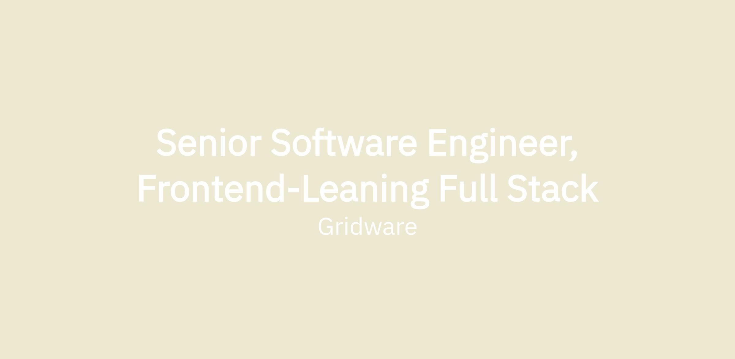 Senior Software Engineer, Frontend-Leaning Full Stack