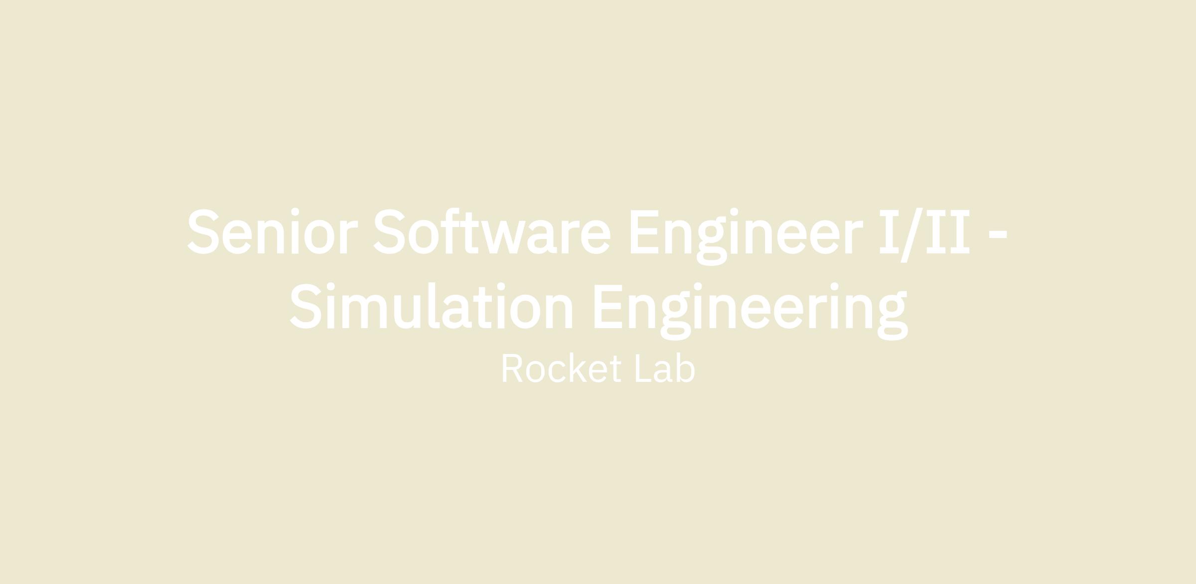 SENIOR SOFTWARE ENGINEER I/II – SIMULATION ENGINEERING