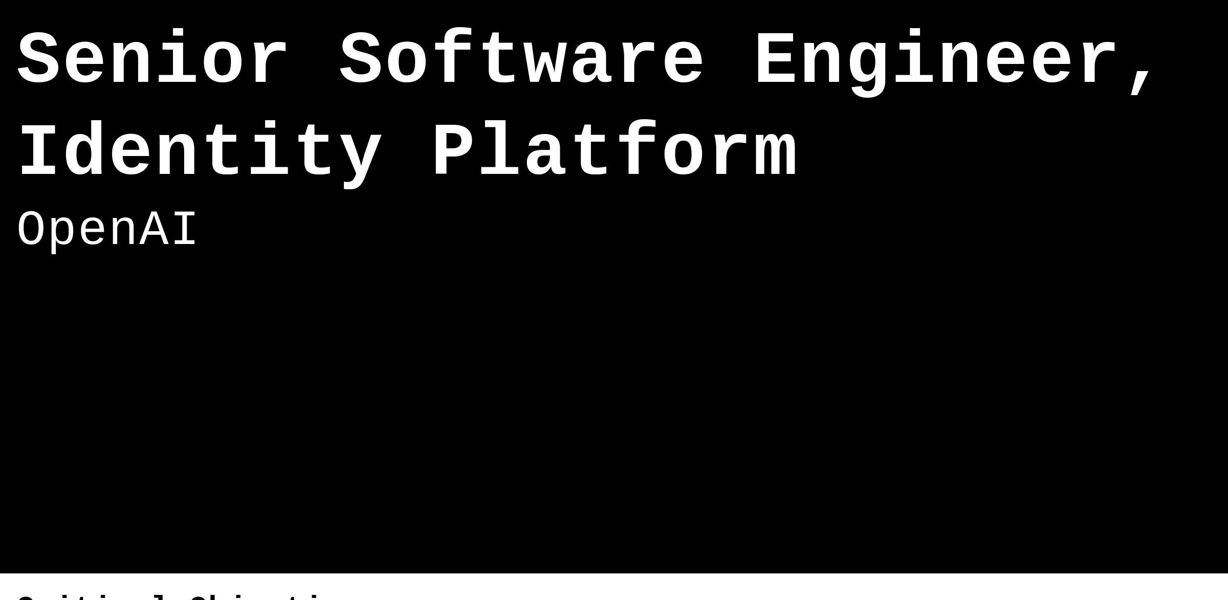 Architect and build the next generation of Identity at OpenAI – including new use cases such as Agent identity and Sign In With ChatGPT