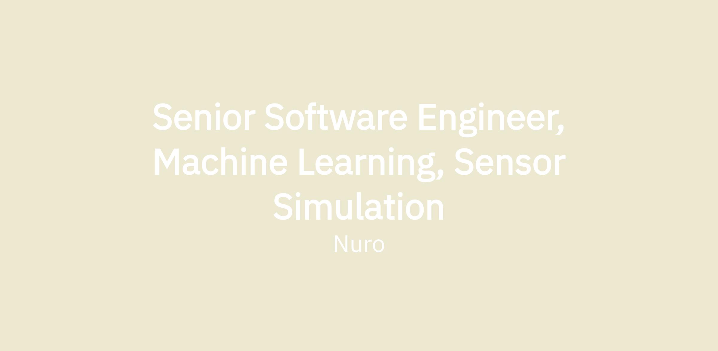 Senior Software Engineer, Machine Learning, Sensor Simulation