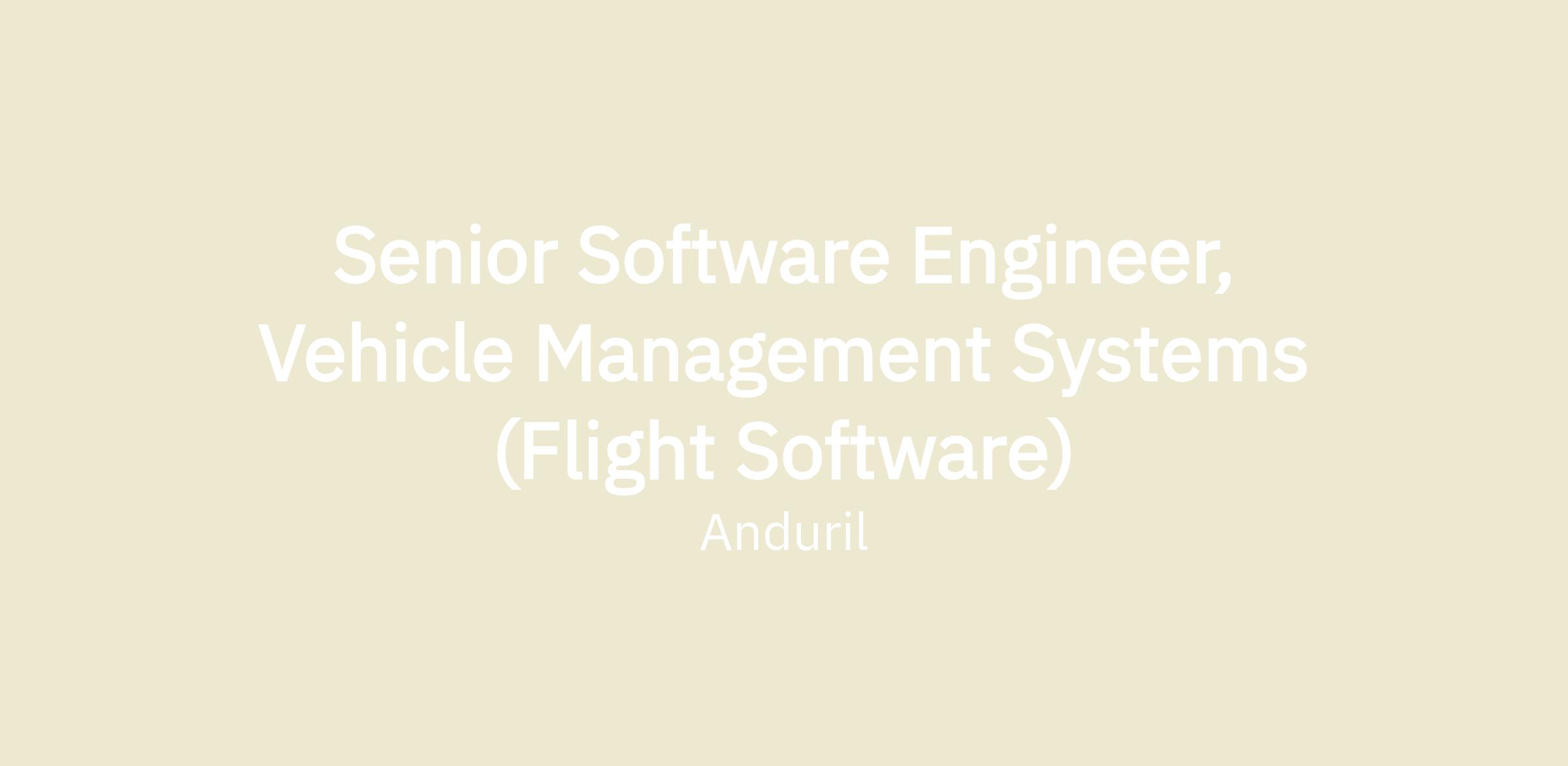 As a Senior Software Engineer, Vehicle Management Systems, you will be responsible for developing the embedded software that powers Anduril’s aircraft while working alongside a team of engineers with a diverse set of backgrounds and skills. Anduril has a collaborative culture with plenty of opportunities for ownership. As an early member of the team, your decisions today will have a large impact on the company now and into the future, as well as on our customers.