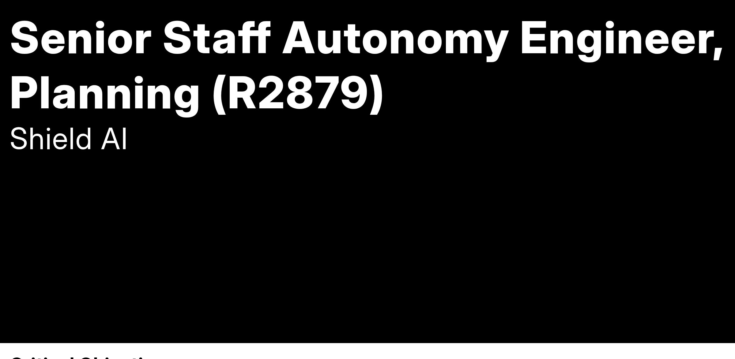 Shield AI is proud to be an equal opportunity workplace and is an affirmative action employer. We are committed to equal employment opportunity regardless of race, color, ancestry, religion, sex, national origin, sexual orientation, age, marital status, disability, gender identity or Veteran status. If you have a disability or special need that requires accommodation, please let us know.