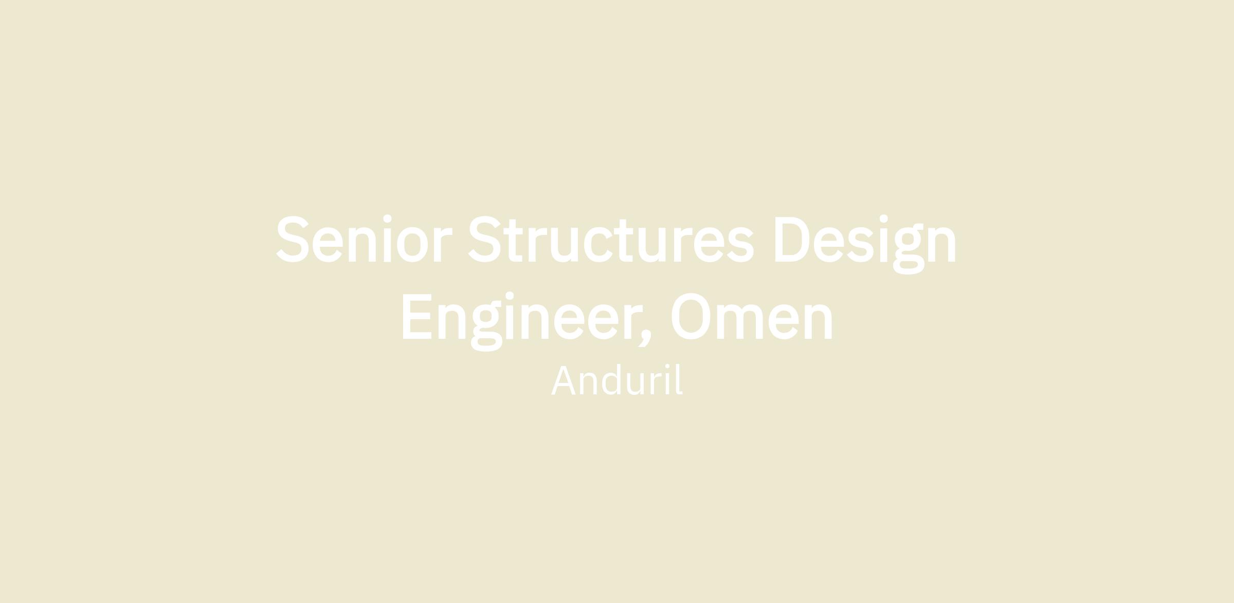 Anduril is seeking a Senior Structural Engineer to join the Omen Team at our Costa Mesa HQ. Omen is Anduril’s hover-to-cruise autonomous air vehicle (AAV) that packs the endurance, payload, and mission flexibility of much larger airplanes into a novel runway-independent Group 3 platform. Omen can operate from ship decks, beaches, or remote island clearings, providing true runway independence and freedom of maneuver across defense and civilian domains. Omen is the first tail-sitter aircraft with a mass-production contract, with an order of 50 systems representing a decisive investment that anchors production and accelerates the development of future systems.