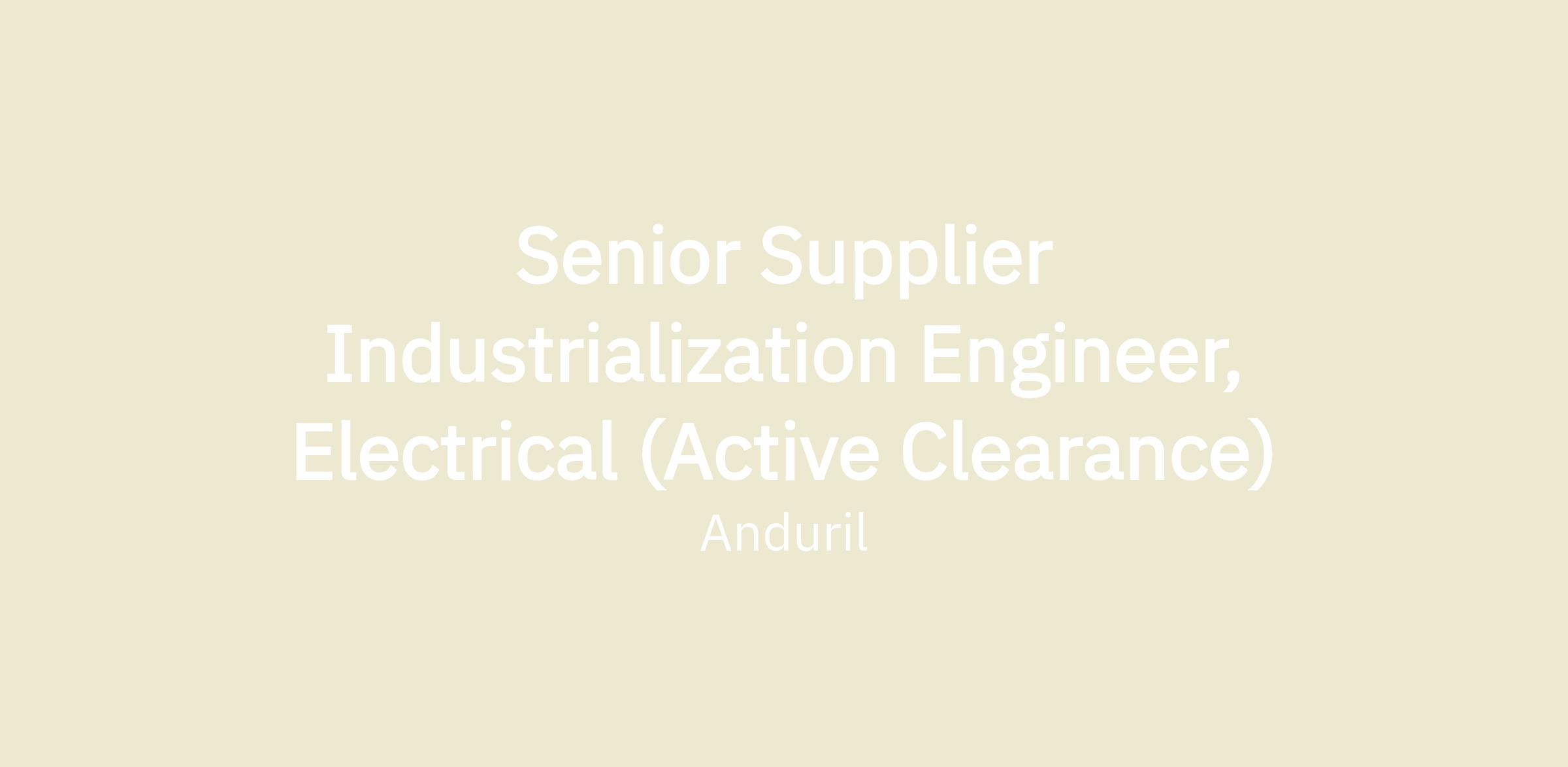 The Senior Supplier Industrialization Engineer, Electrical is a high-profile, cross functional position that plays an integral role in enabling development and production flow of Anduril’s critical supply base. You will work in close coordination with internal engineering, quality, supply chain and manufacturing departments as well as directly with suppliers to execute effective, creative and smart supply chain strategies to achieve production goals.