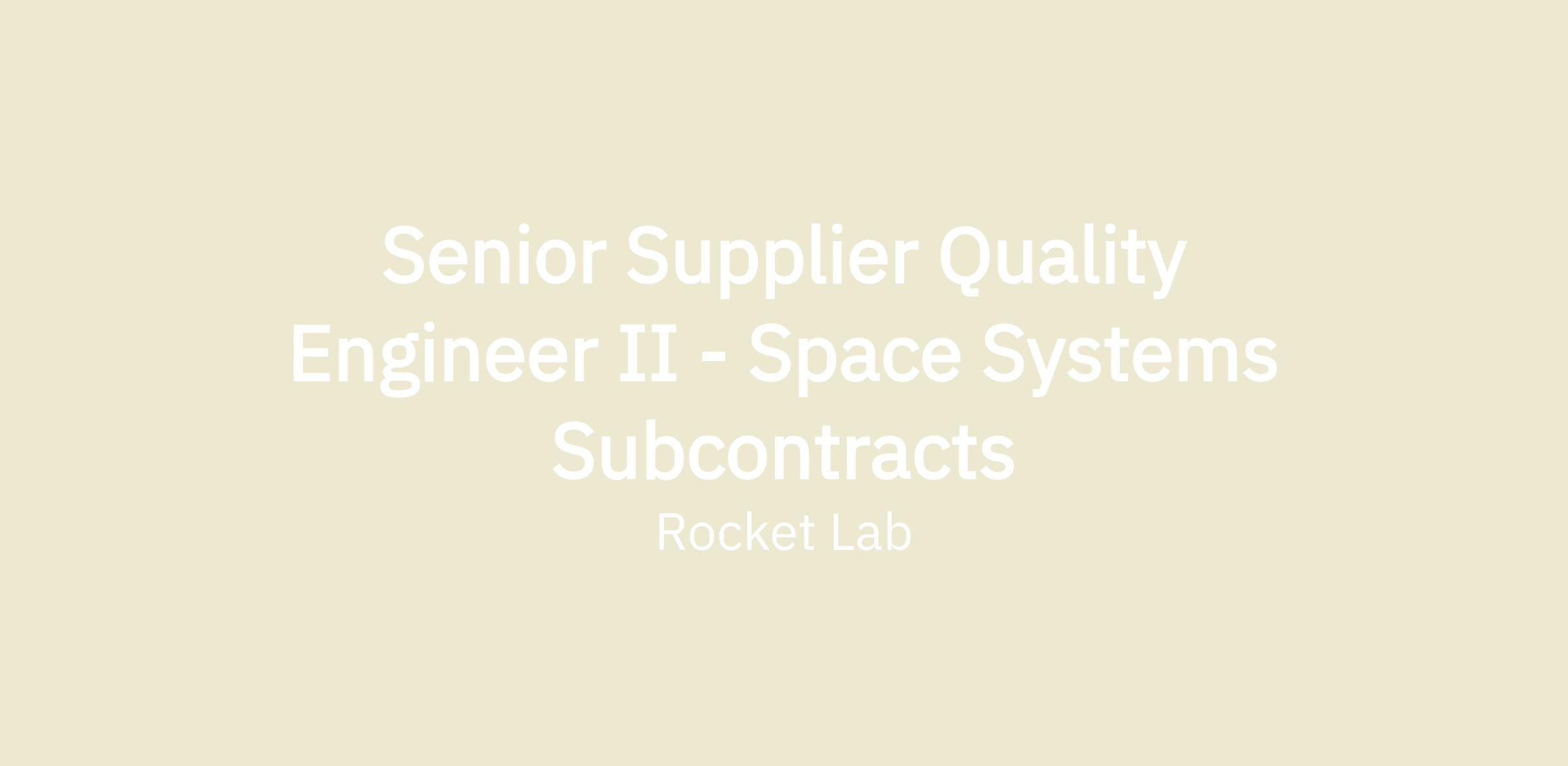 Based out of Rocket Lab's headquarters in Long Beach, CA, the Senior Supplier Quality Engineer II – Space Systems Subcontractors is responsible for the end-to-end quality of complex, high-value electro-mechanical box assemblies built by strategic subcontractors and integrated into Rocket Lab satellite programs. This is a subcontractor management role — you own the supplier relationship, the quality system, and the product from contract award through delivery and on-orbit acceptance. You are the primary quality authority for some of Rocket Lab's most technically complex and schedule-critical procured deliverables.