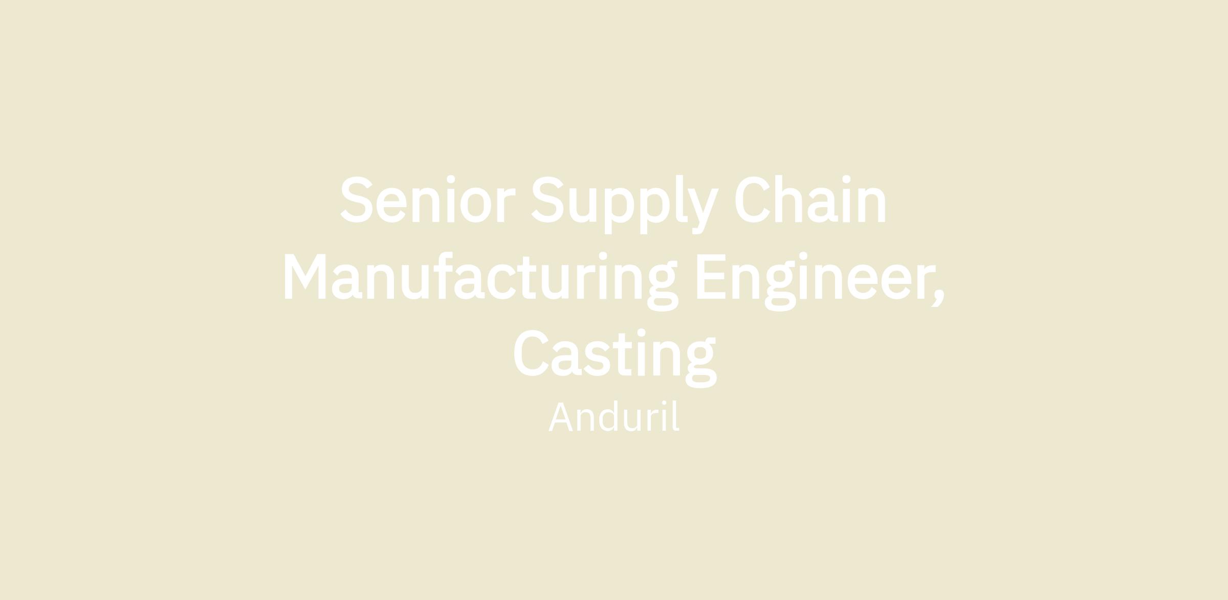 The Senior Supply Chain Manufacturing Engineer, Casting (internally known at Anduril as Senior Supplier Industrialization Engineer) is a high-profile, cross functional position that plays an integral role in enabling development and production flow of Anduril’s critical supply base. You will work in close coordination with internal engineering, quality, supply chain and manufacturing departments as well as directly with suppliers to execute effective, creative and smart supply chain strategies to achieve production goals.