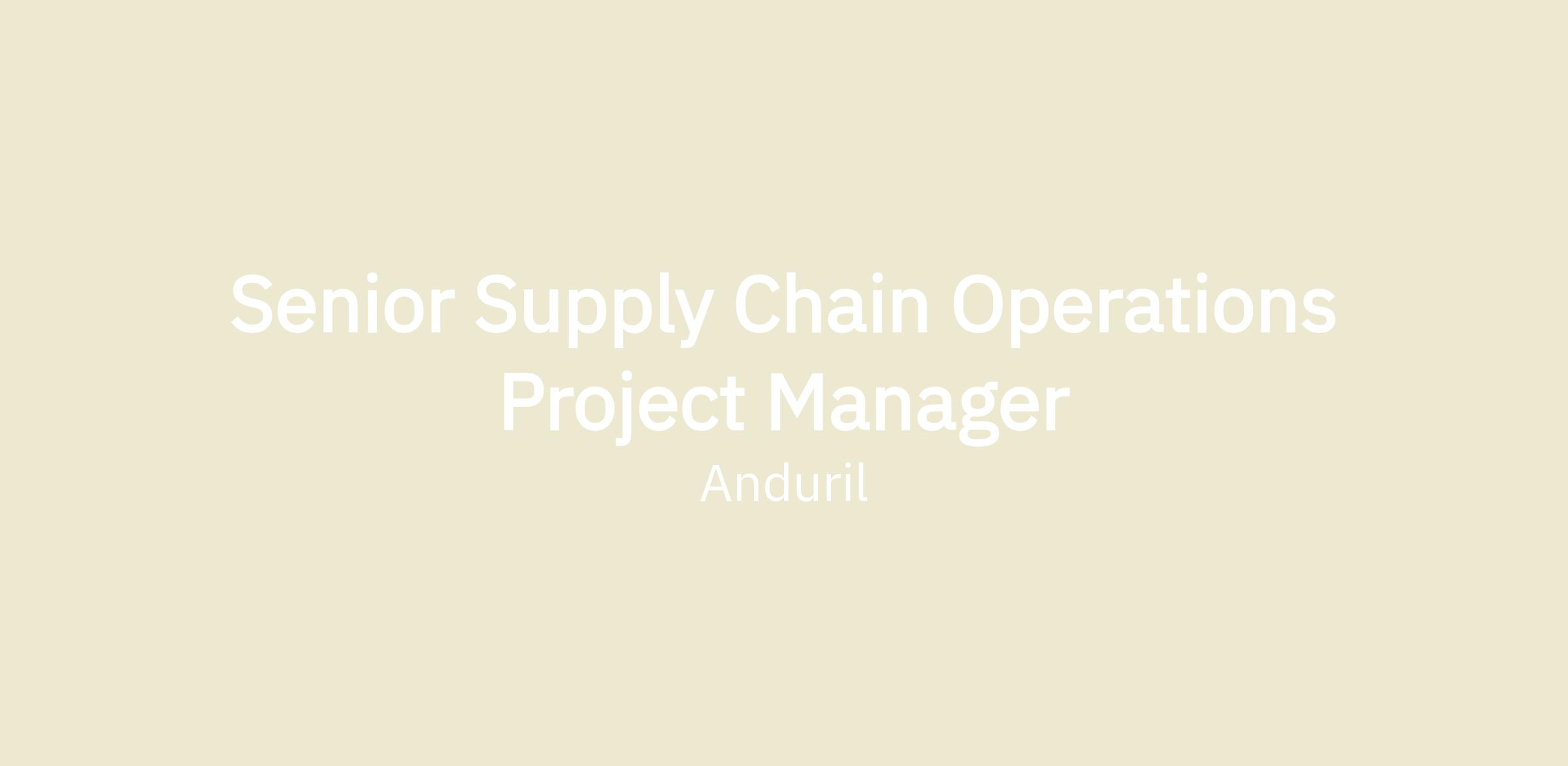 The Senior Supplier Operations Project Manager is part of our Supply Chain Tech and Optimization. This role will own large parts of the end-to-end supplier performance and operations, and process ecosystem. As such, the role will collaborate with internal Supply Chain teams (Procurement, Purchasing, Planning, Program Management) and external teams (IT, Engineering, Business Systems, Strategy, Legal, People, etc.) to develop supplier operations programs and system implementation plans intended to enhance our digital landscape and increase efficiencies throughout our end-to-end processes, all with a focus on introducing scale and resiliency into our growing people and tools footprint.