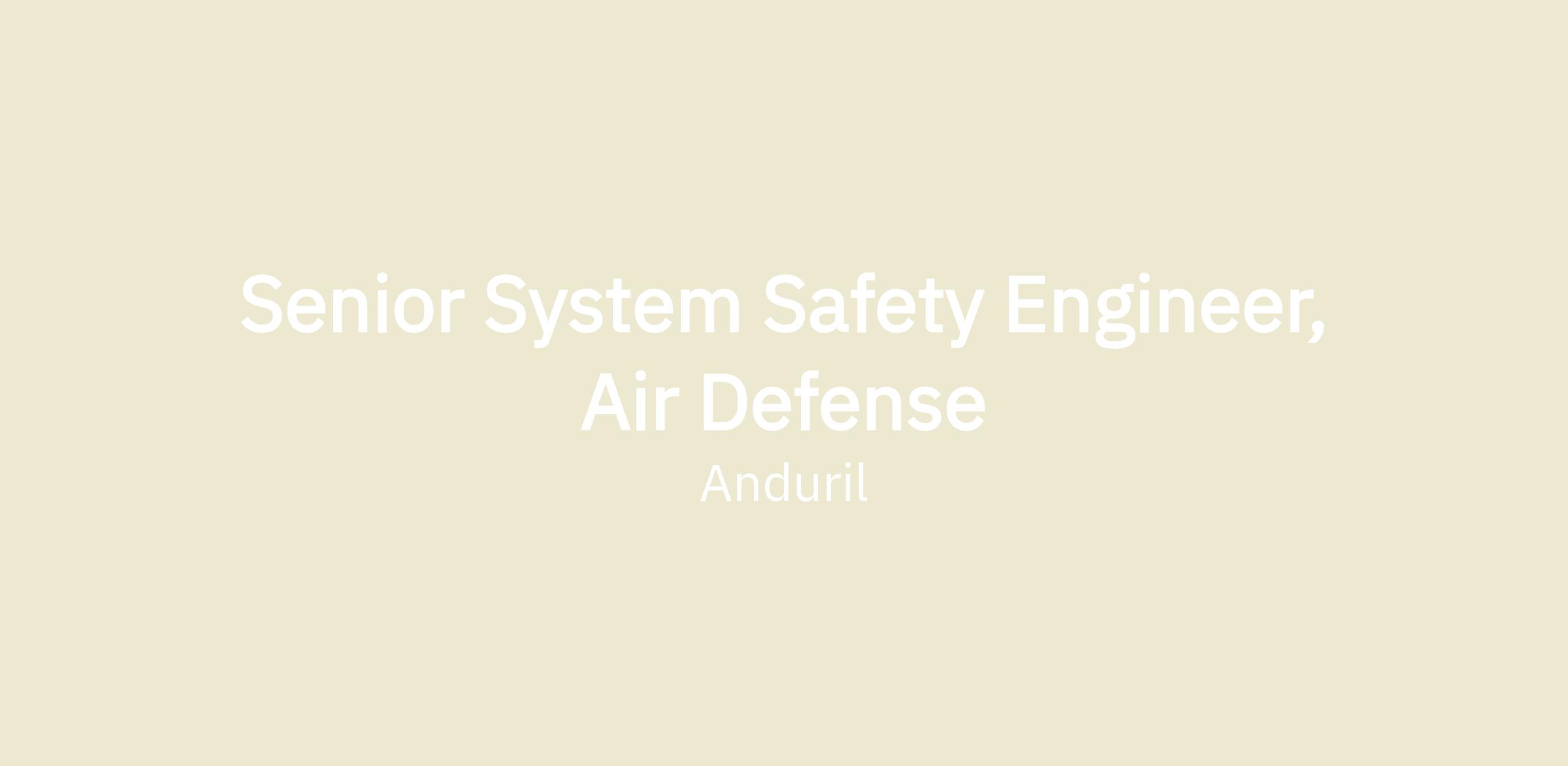Anduril’s Reliability & System Safety Engineering organization is seeking a System Safety Engineer to support our Air Defense programs. The Reliability & System Safety Engineering team works with our broader Engineering team to ensure our products operate and meet all mission performance, environmental conditions, and customer requirements. We develop cutting-edge Reliability & System Safety processes and methods to secure scalable, long-term business success.